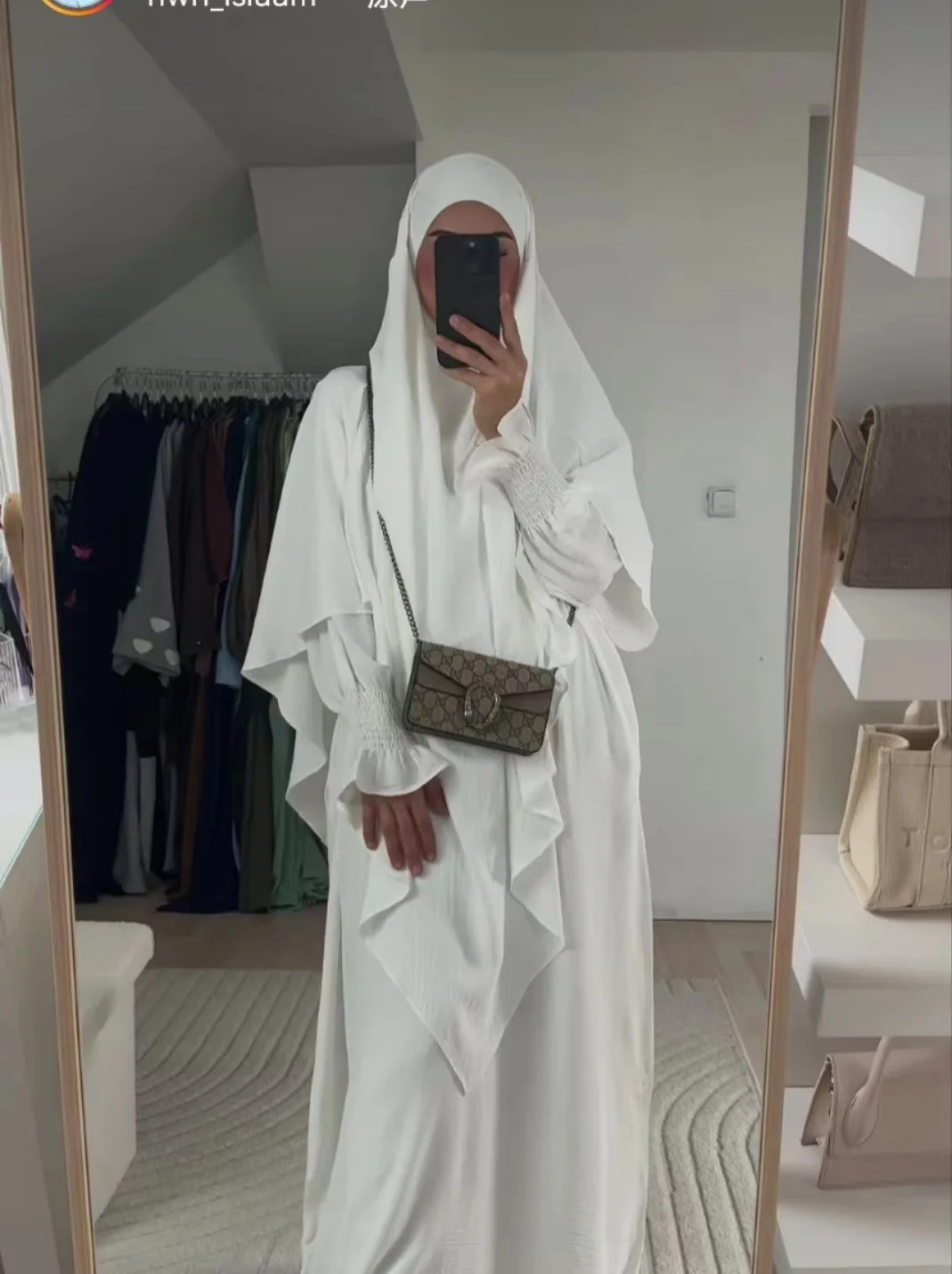 2 Pcs Muslim Set New Sweet Solid Color Long Dress+Single Layer Shawl Suit Abaya and Khimar Set Jilbab 2 Pcs Ramadan Long Hijab