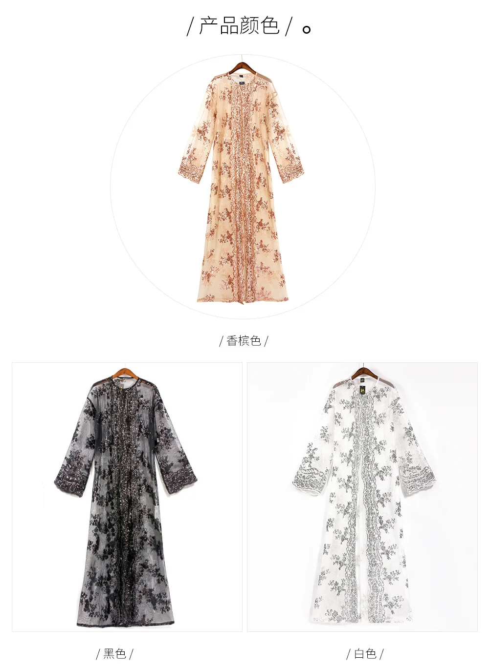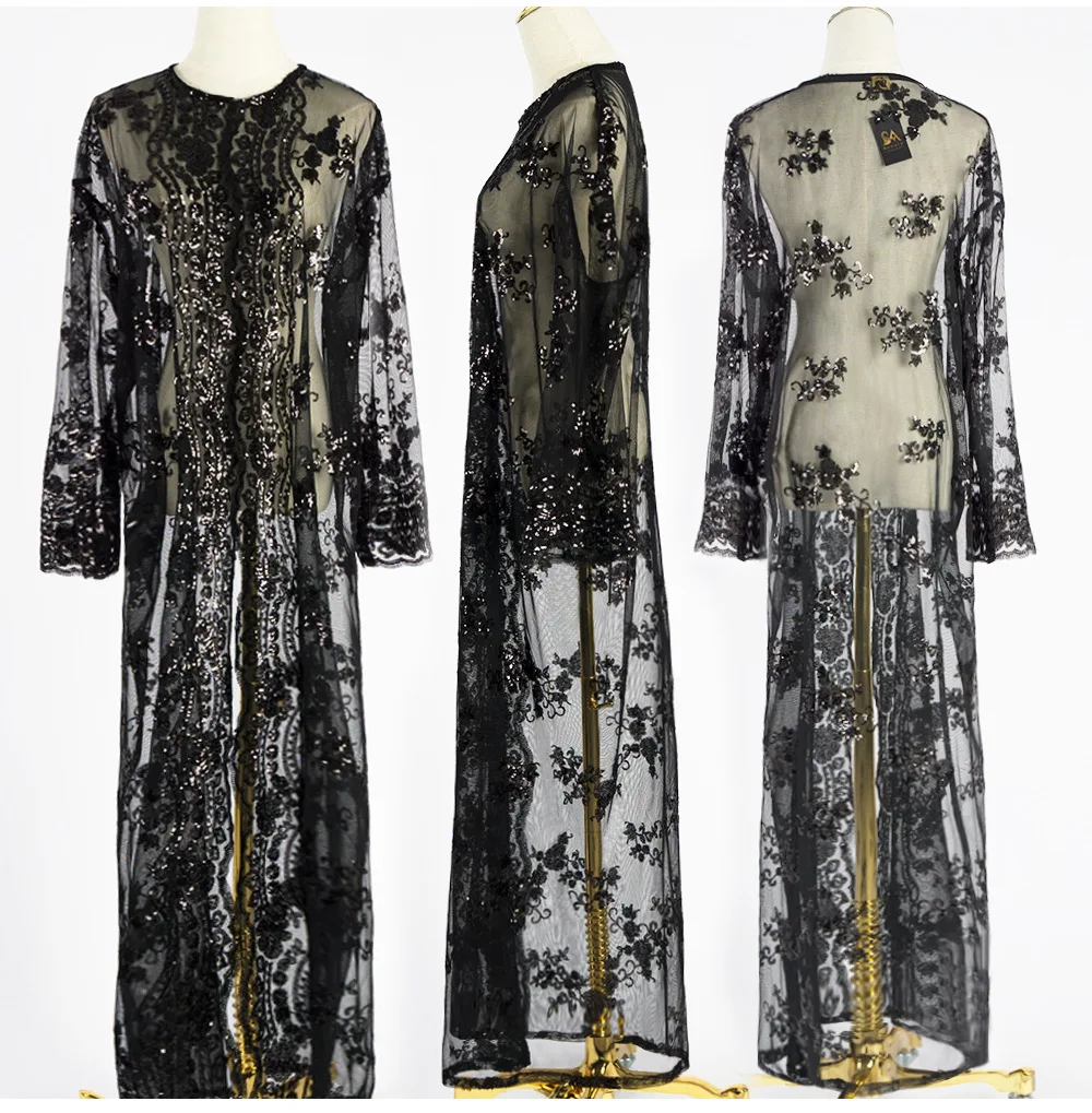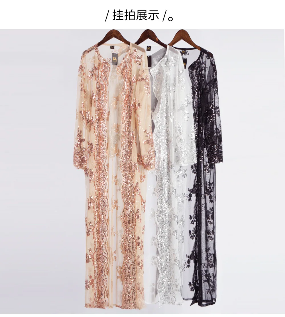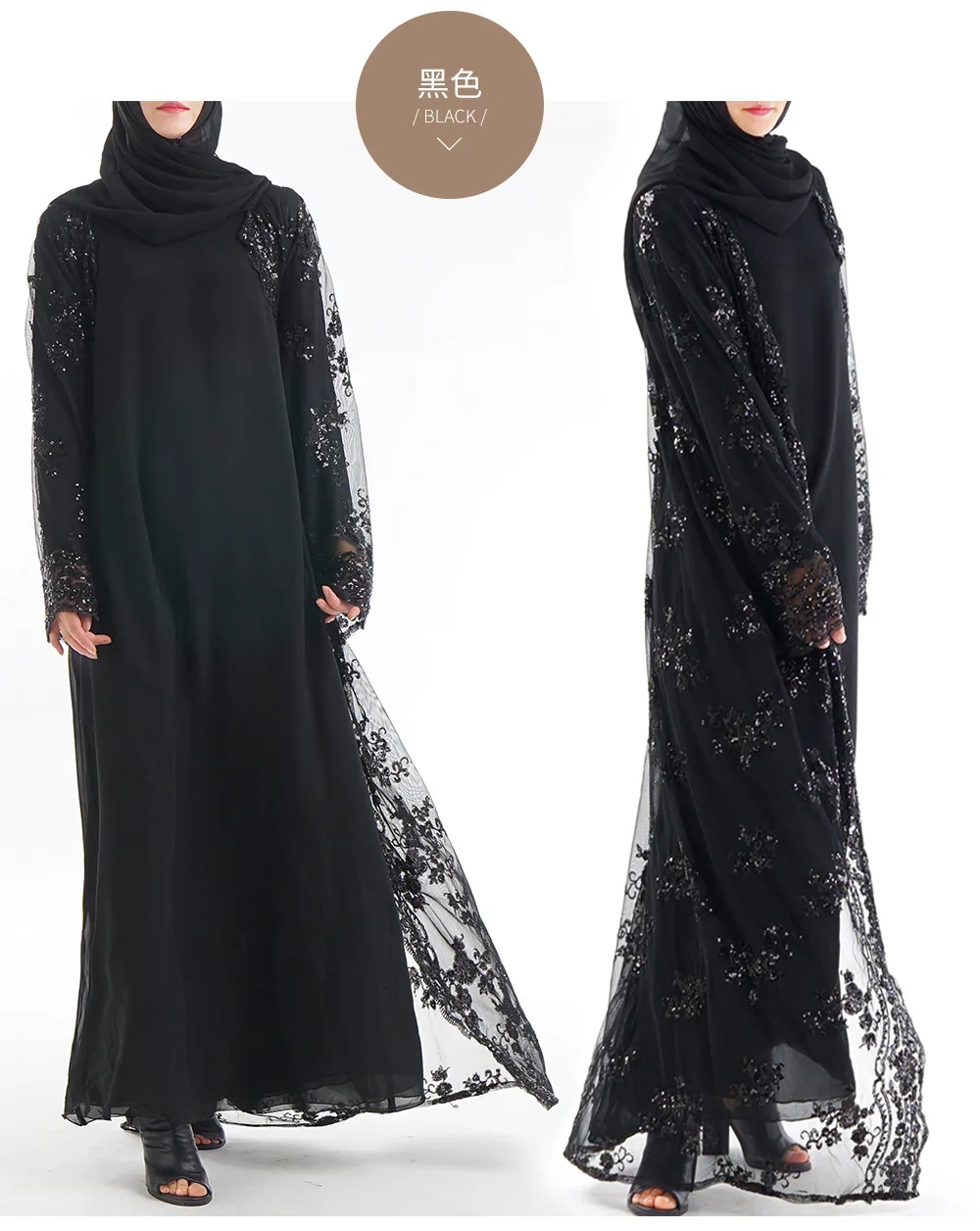2025 New Black White Sequin Kimono Cardigan Abaya Dubai Luxury Muslim Kaftan Abayas For Women Turkish Islamic Clothing Outfit