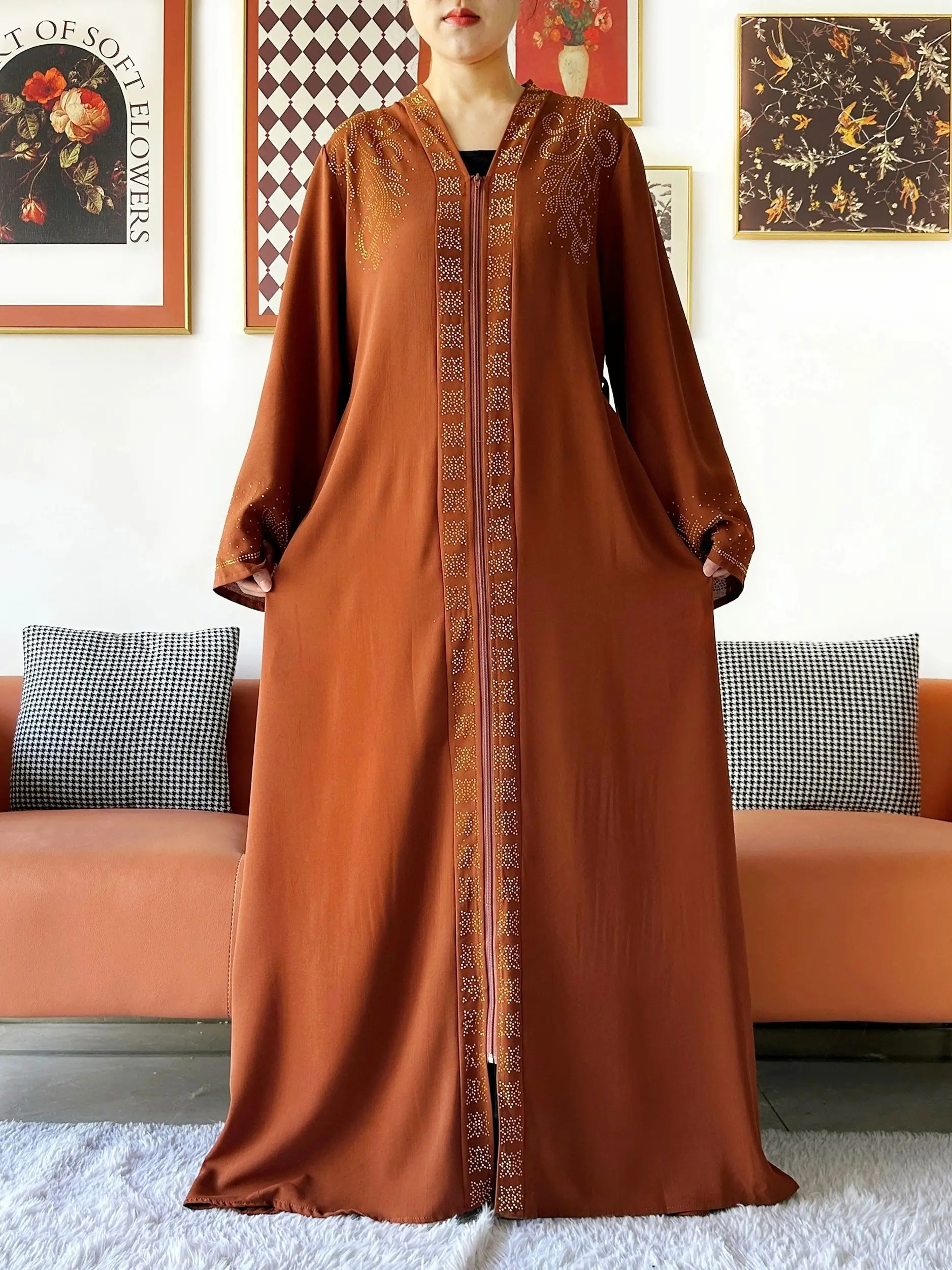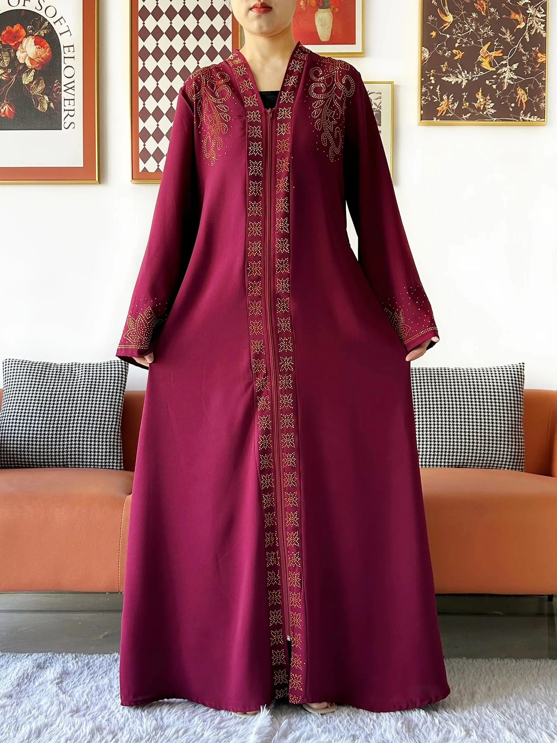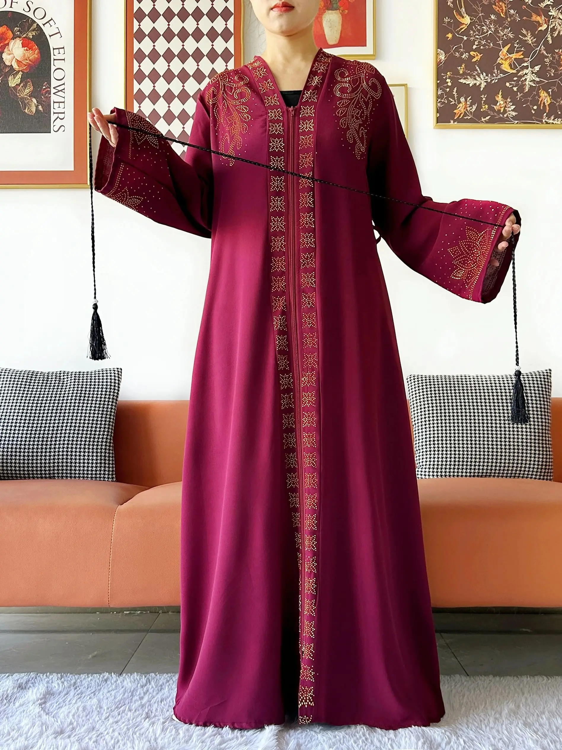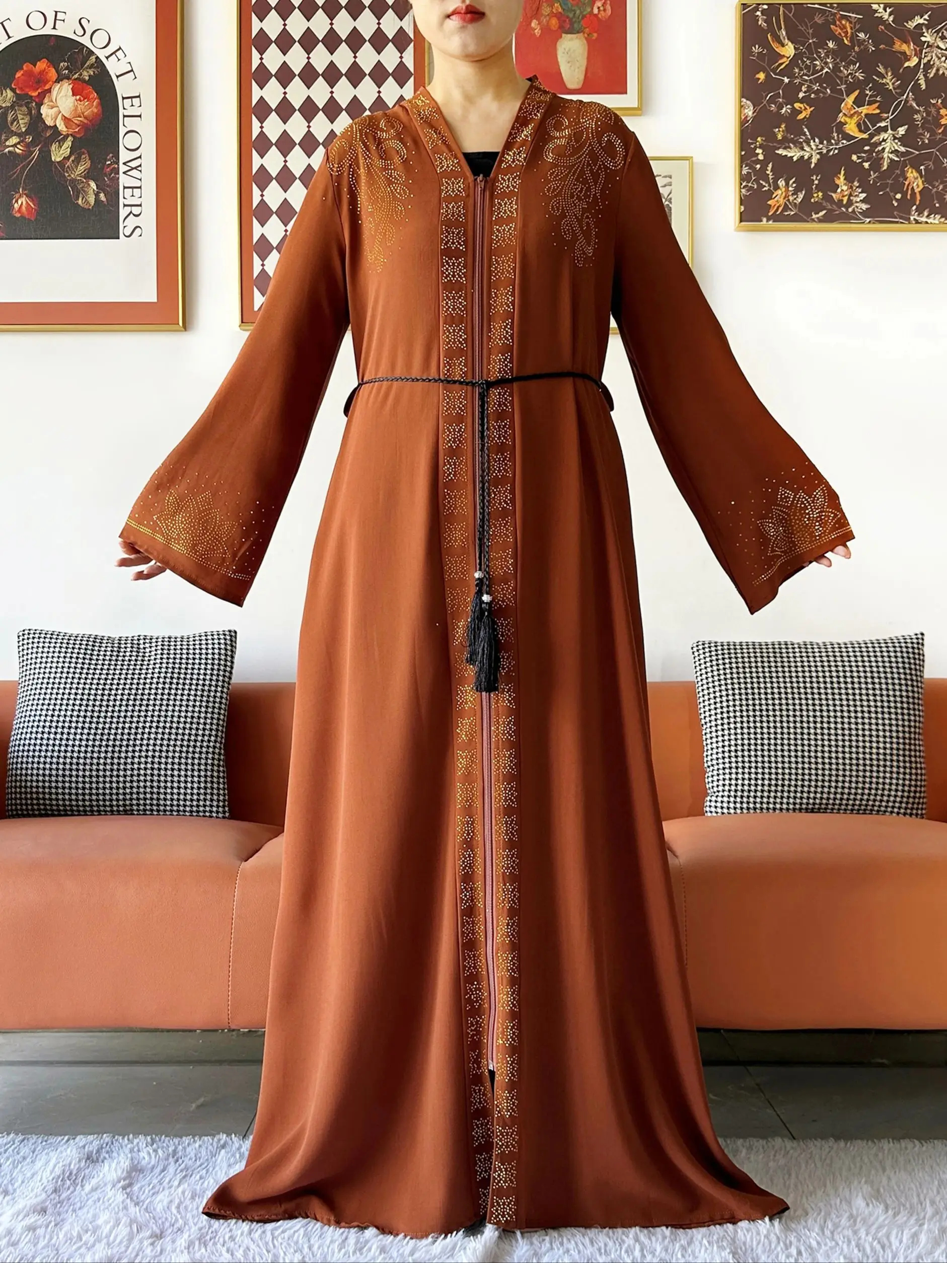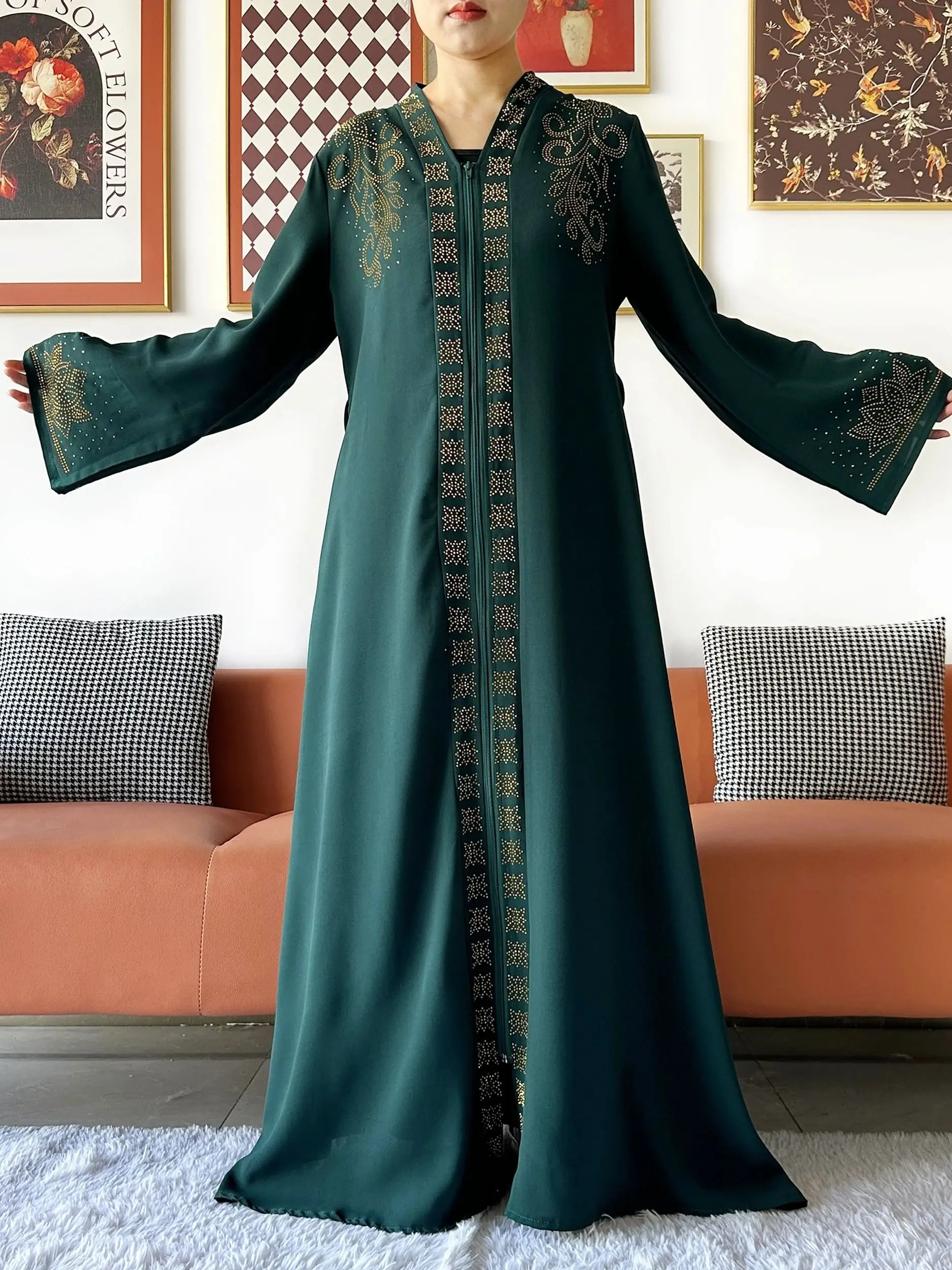 2025 New Lady Elegant Dress Chiffon Open Abaya with Zipper Muslim Women Dress Islamic Clothing Cardigan Abaya Women Muslim Dress