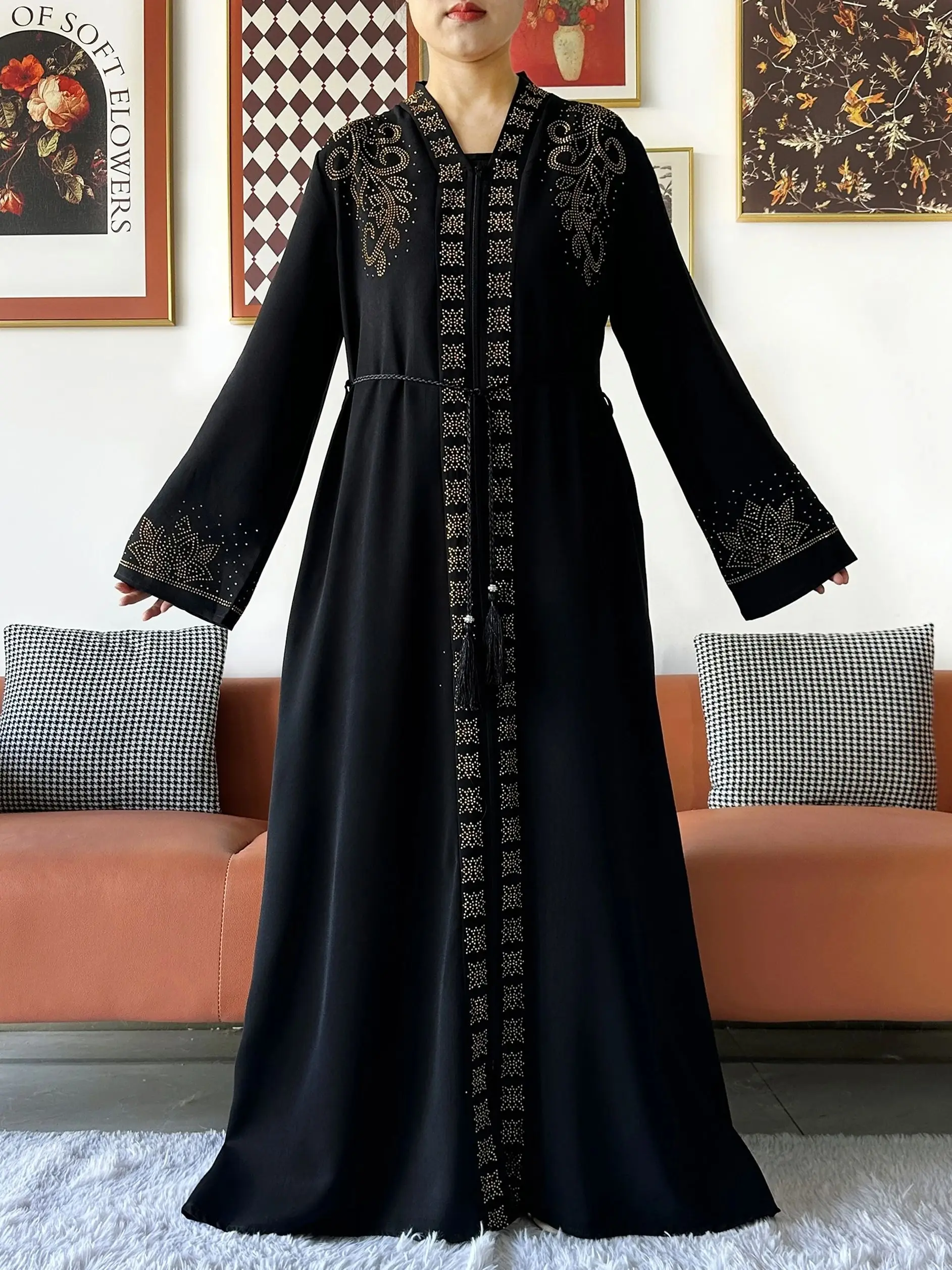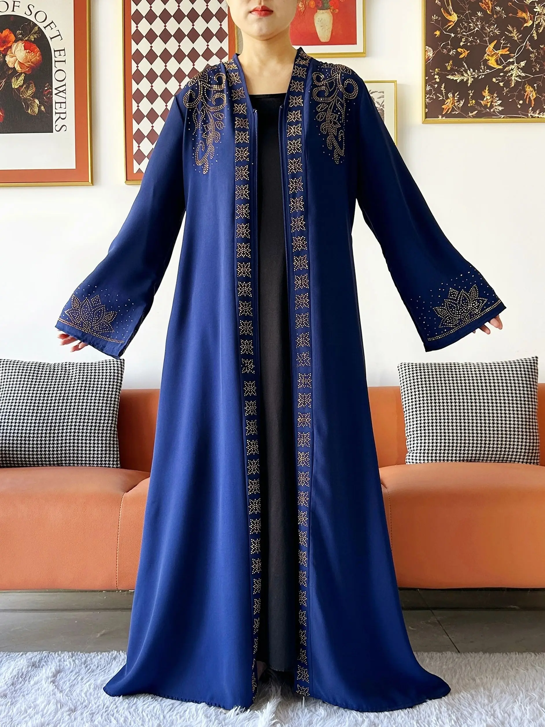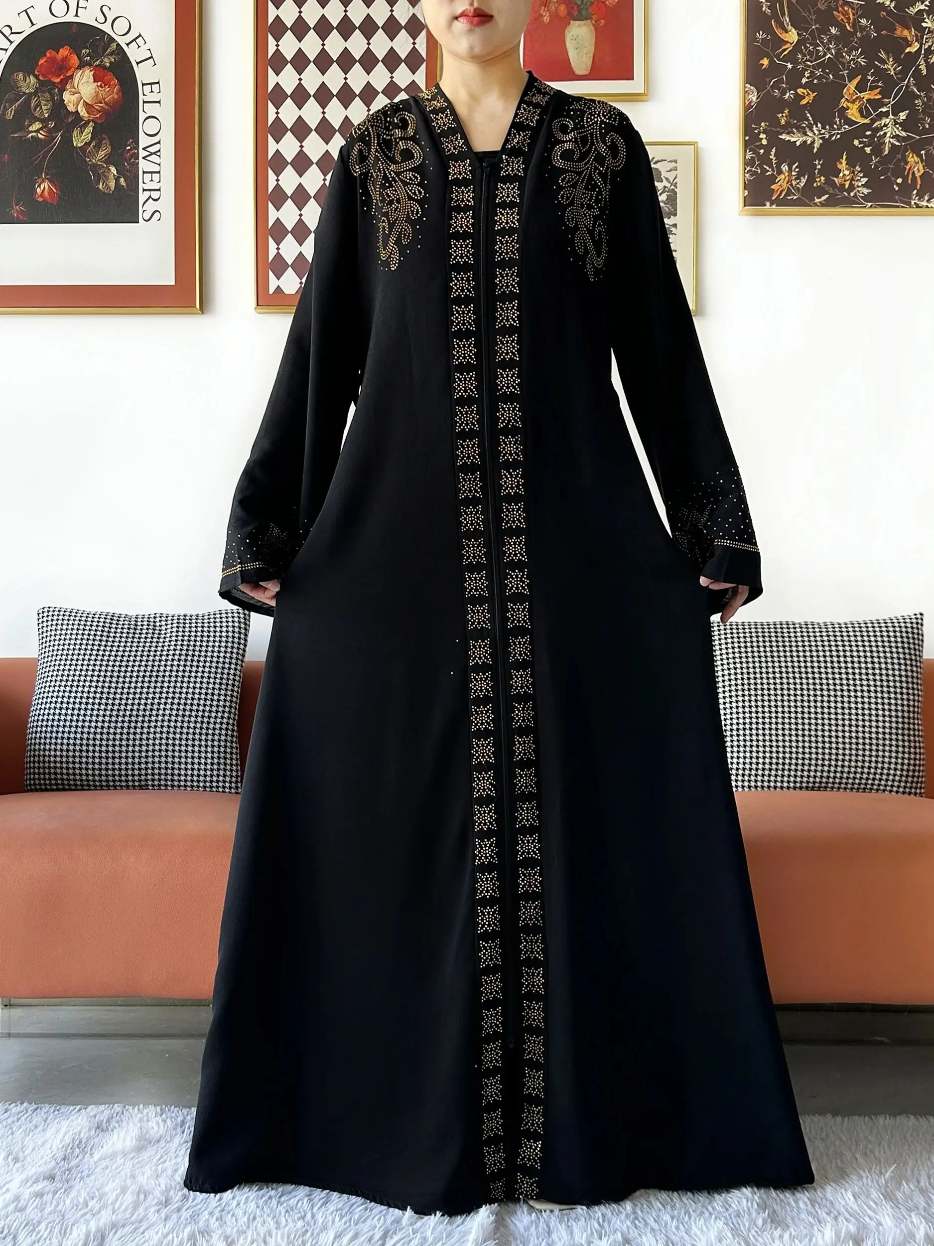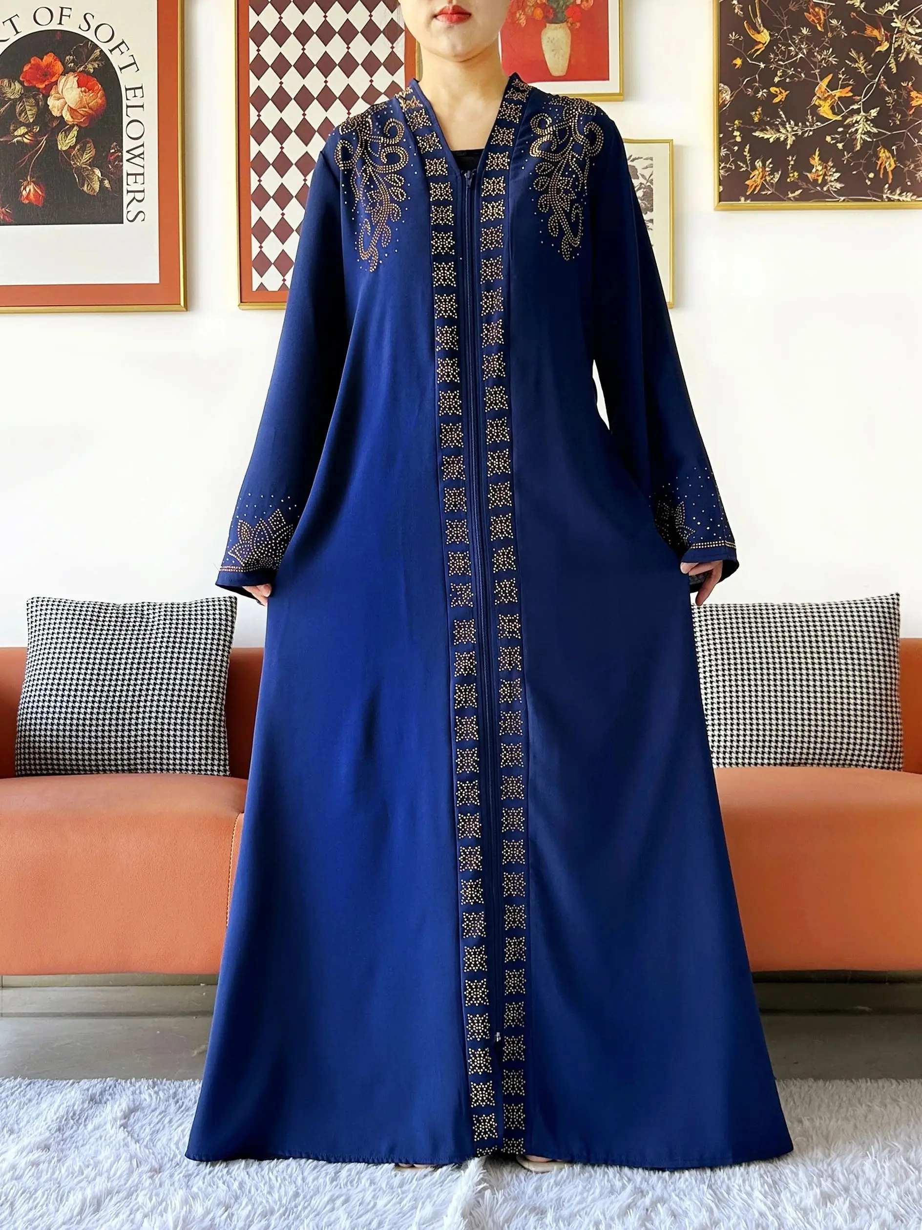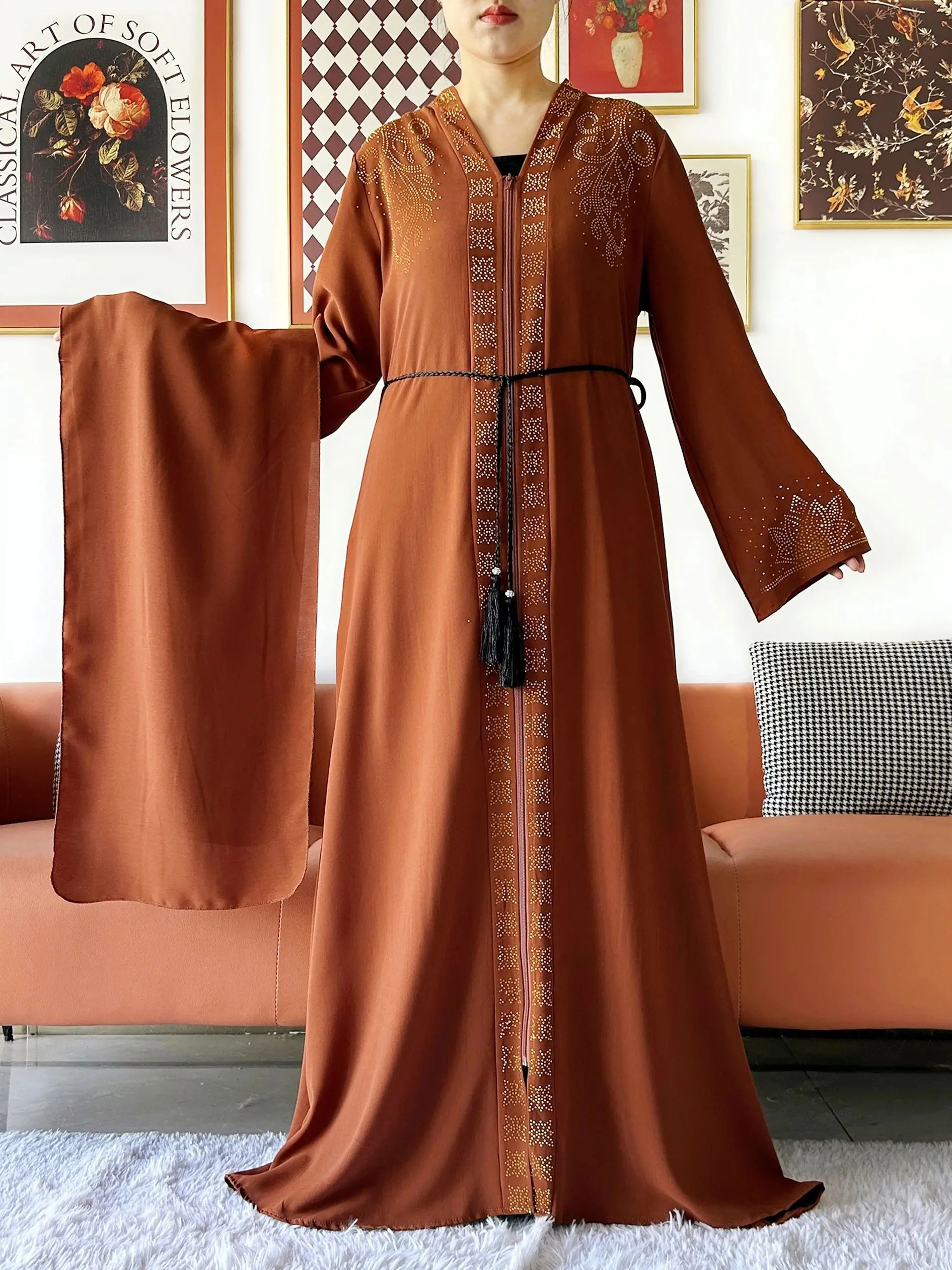 2025 New Lady Elegant Dress Chiffon Open Abaya with Zipper Muslim Women Dress Islamic Clothing Cardigan Abaya Women Muslim Dress