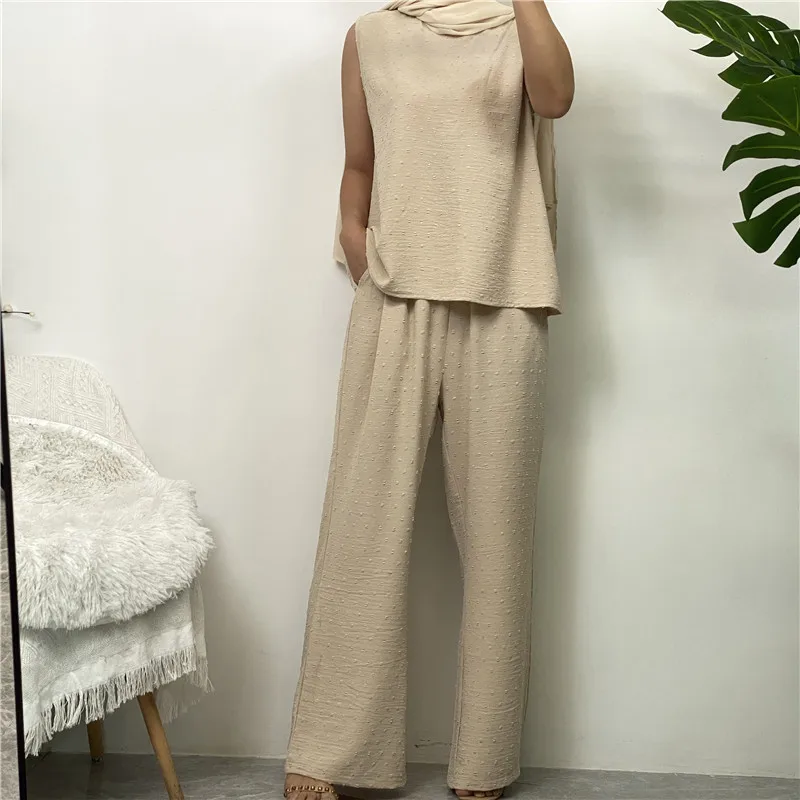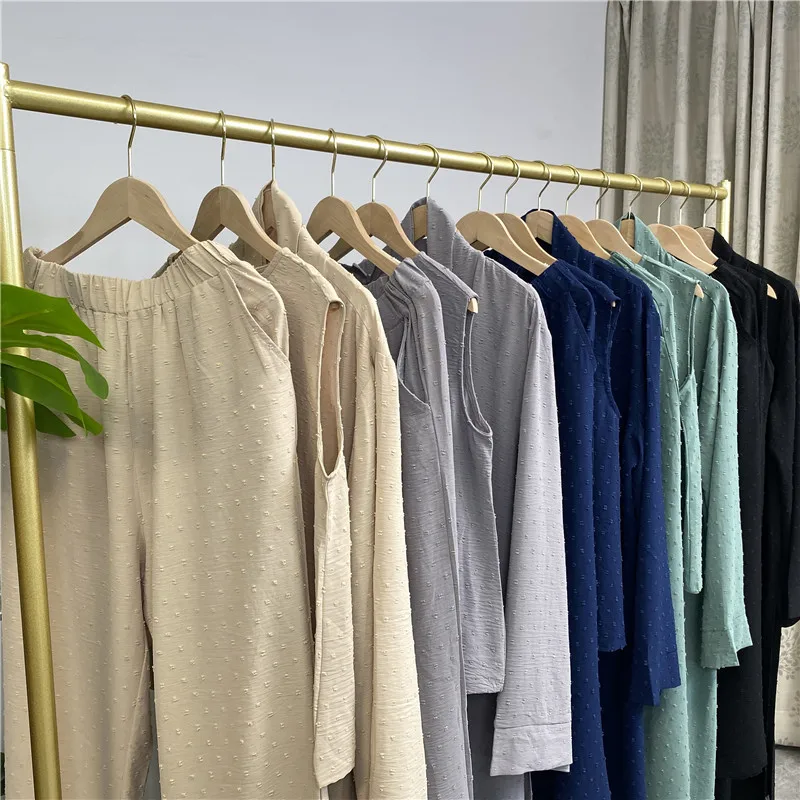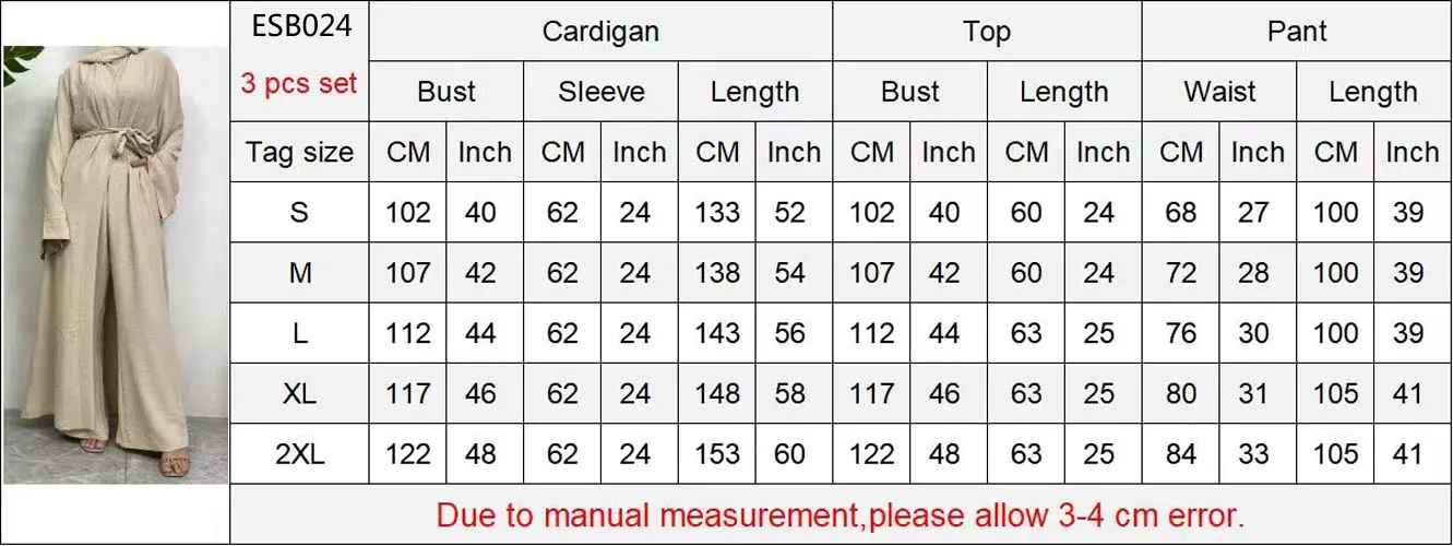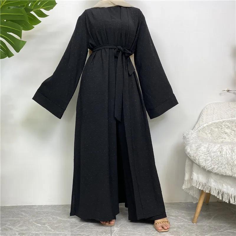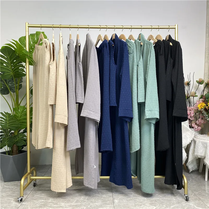 3 Piece Set Eid Muslim Dress Women Open Abaya Kaftan Dubai Kaftan Tops Pants Turkey Islam Kimono Robe Femme Musulmane Ensembles