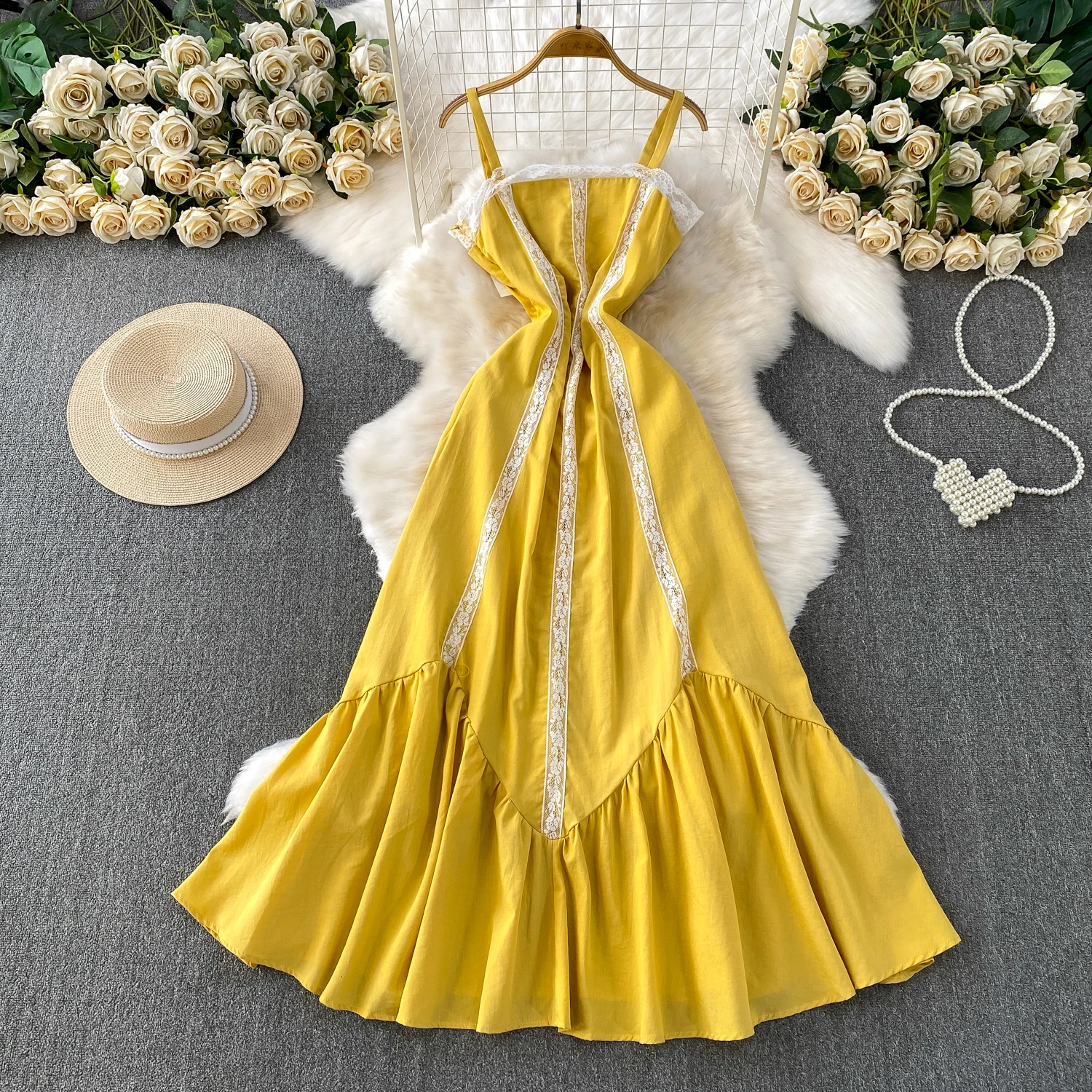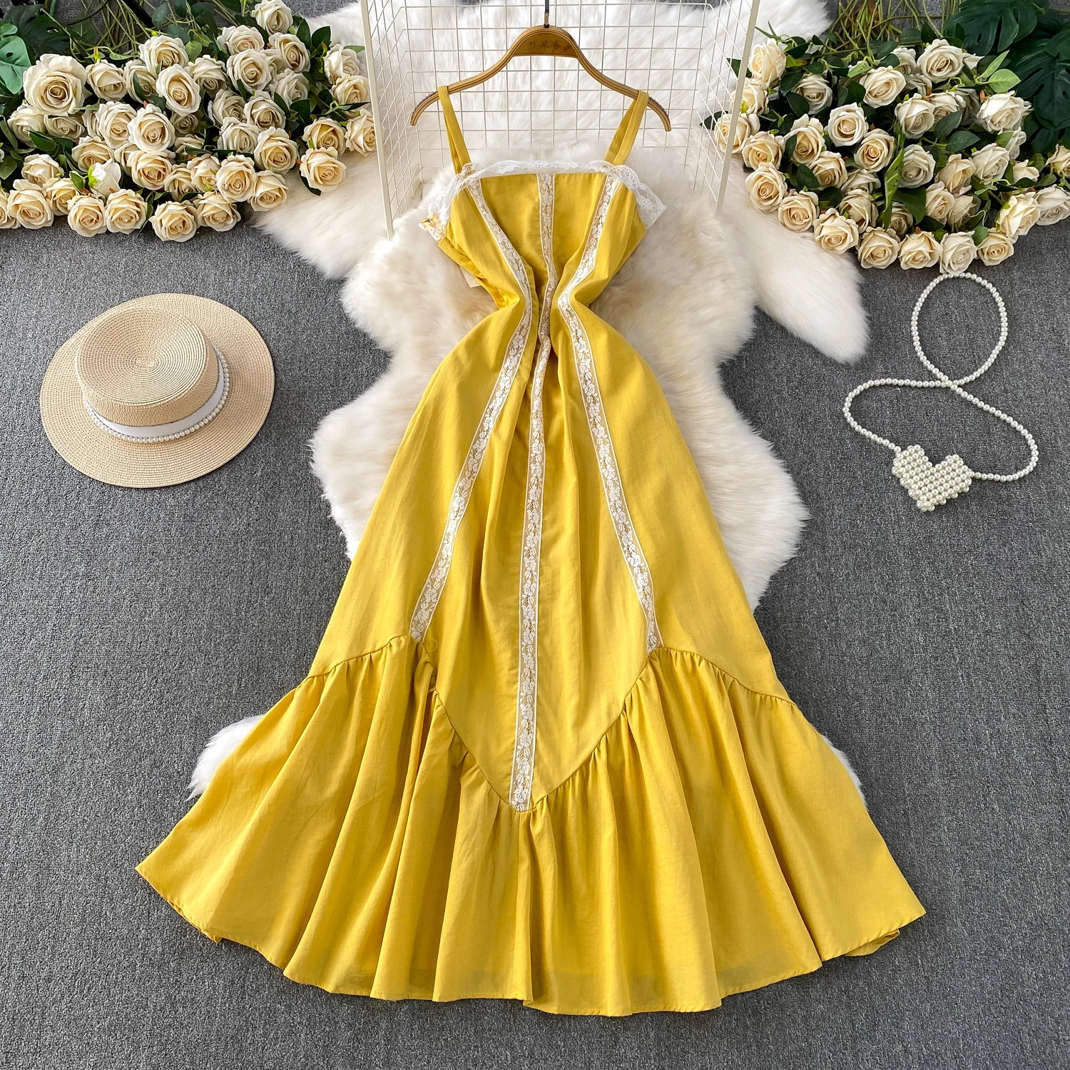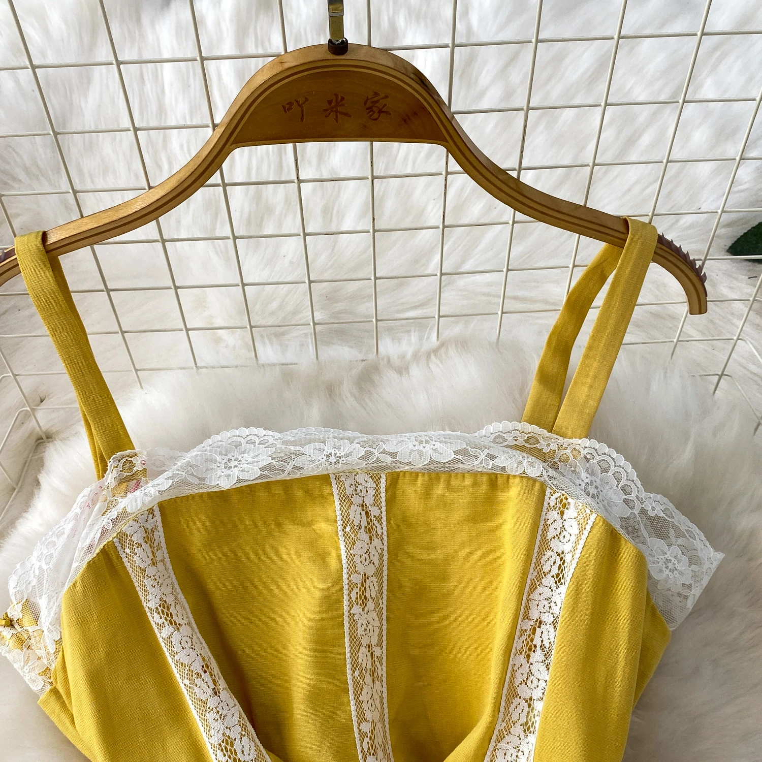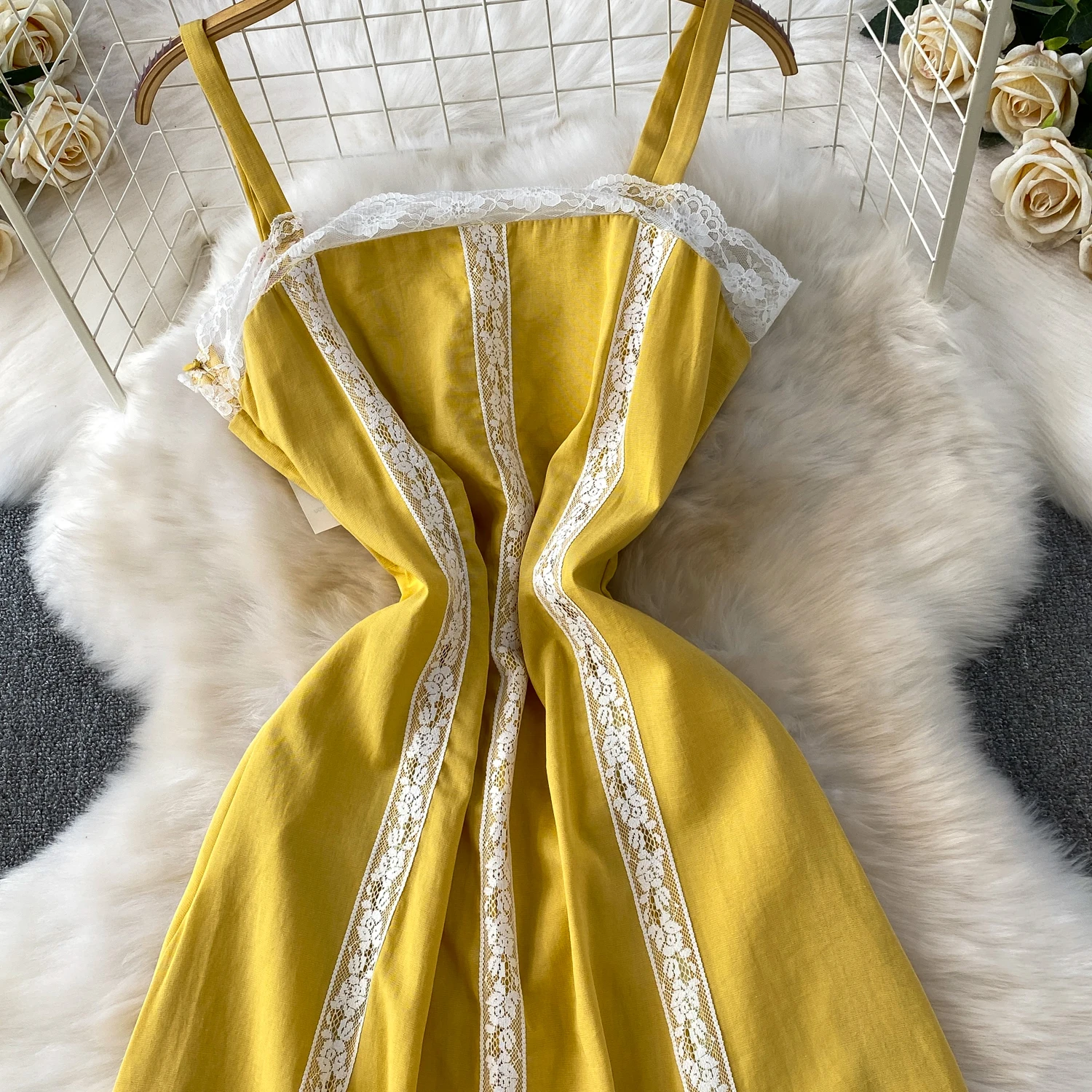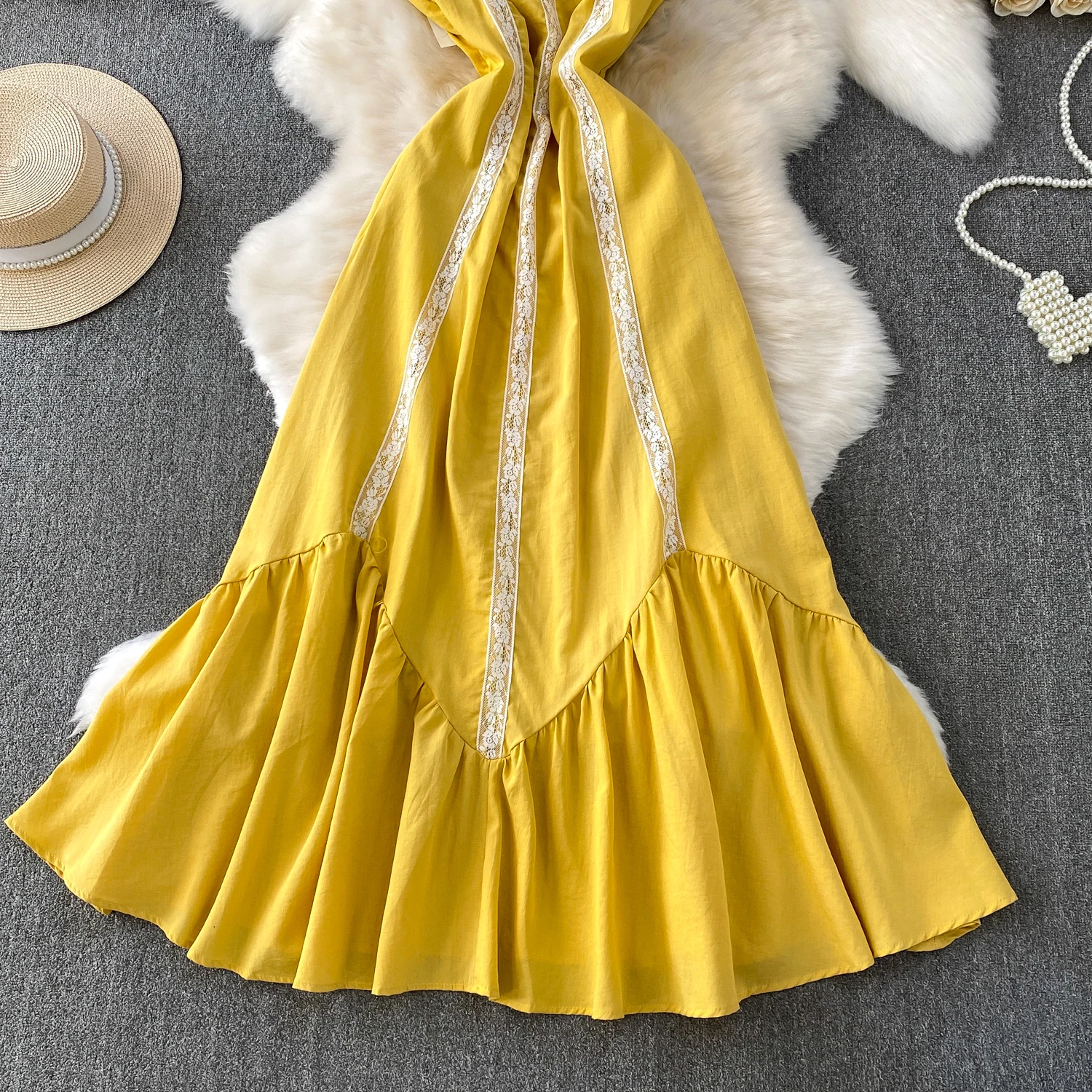 Embrace elegance with this sweet style featuring delicate lace splicing, perfect for a summer vacation.