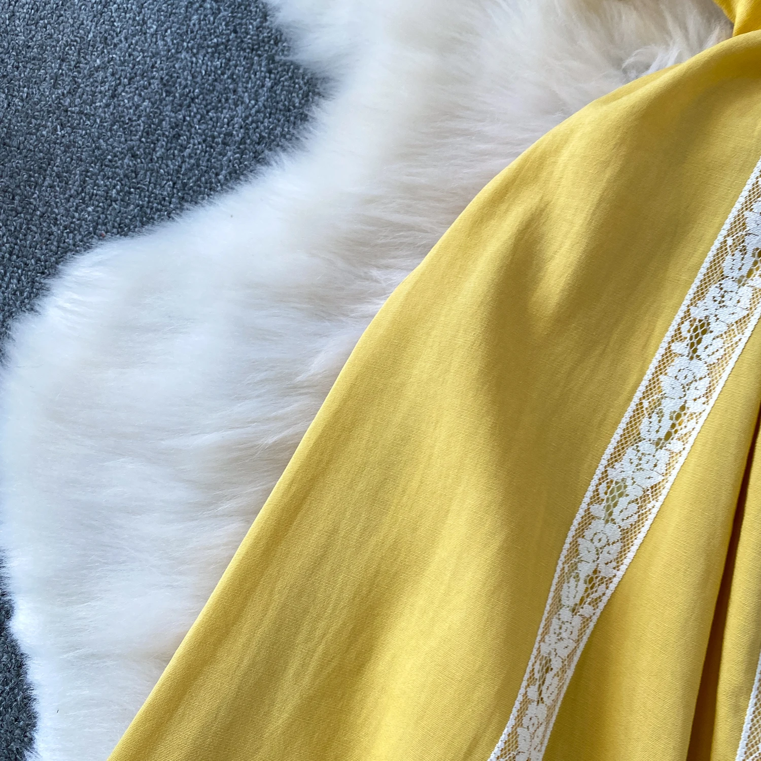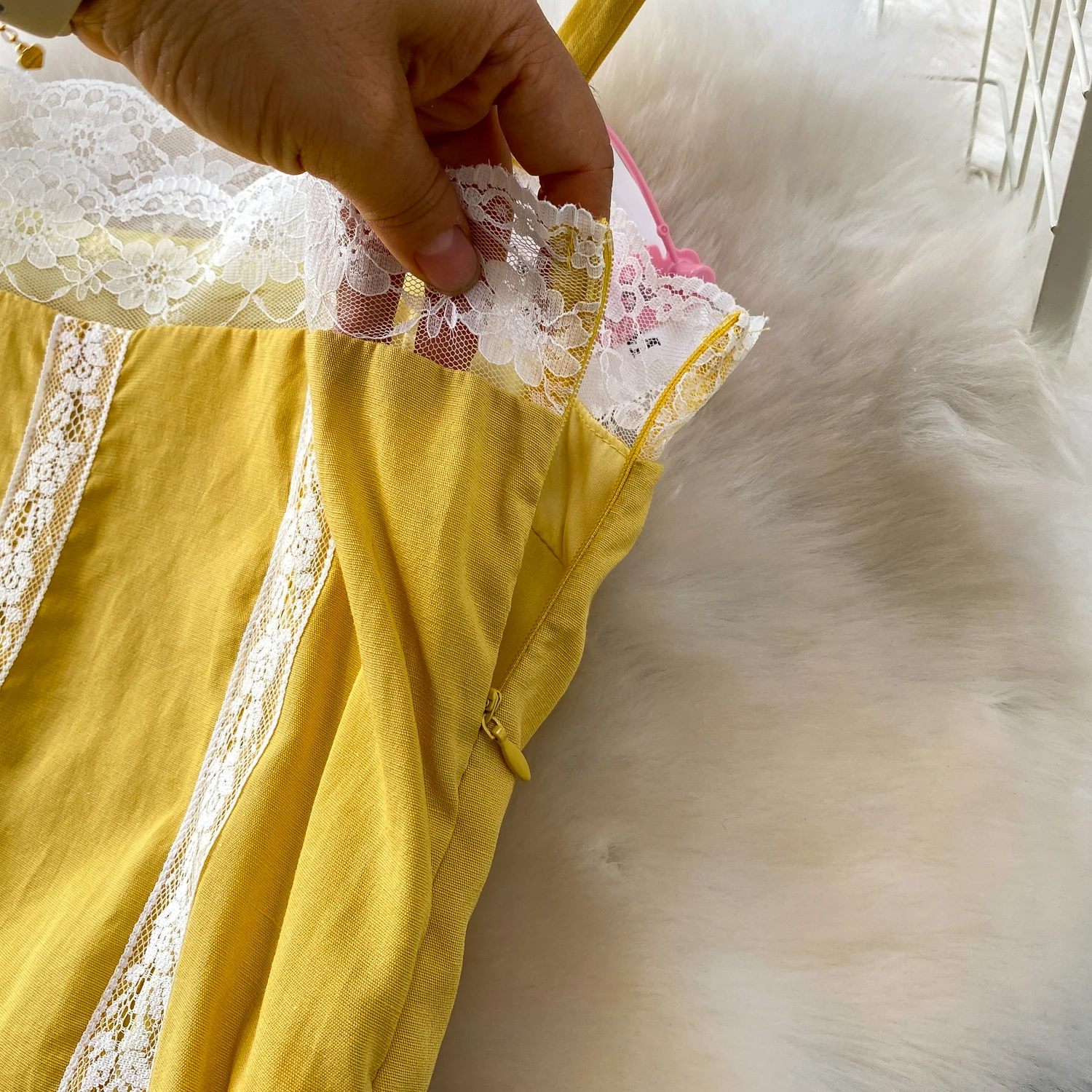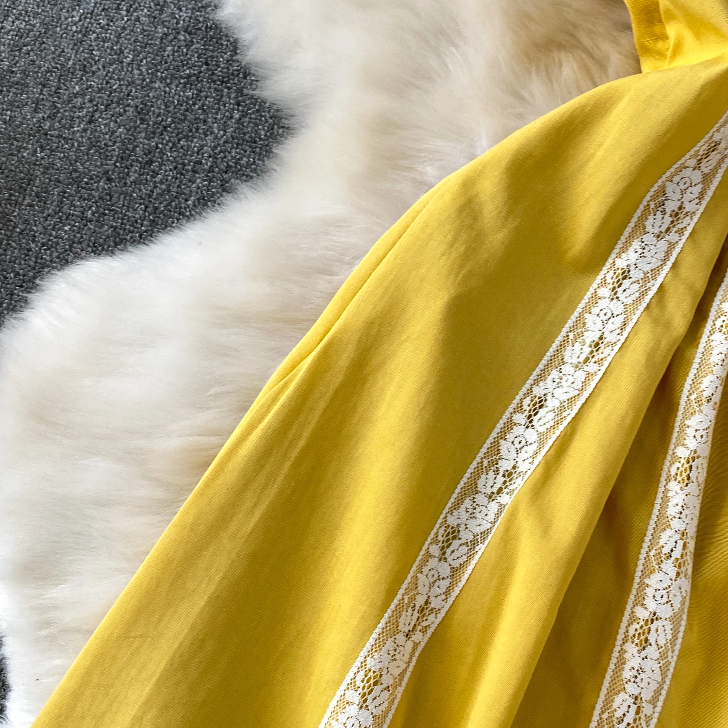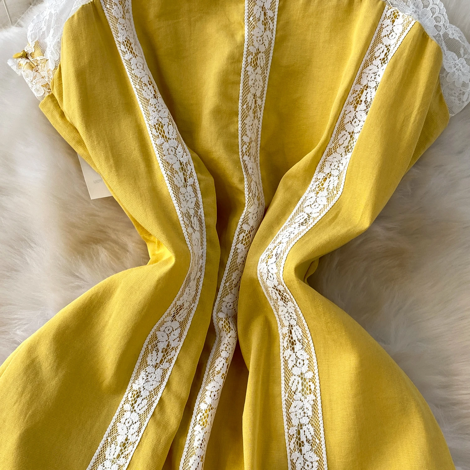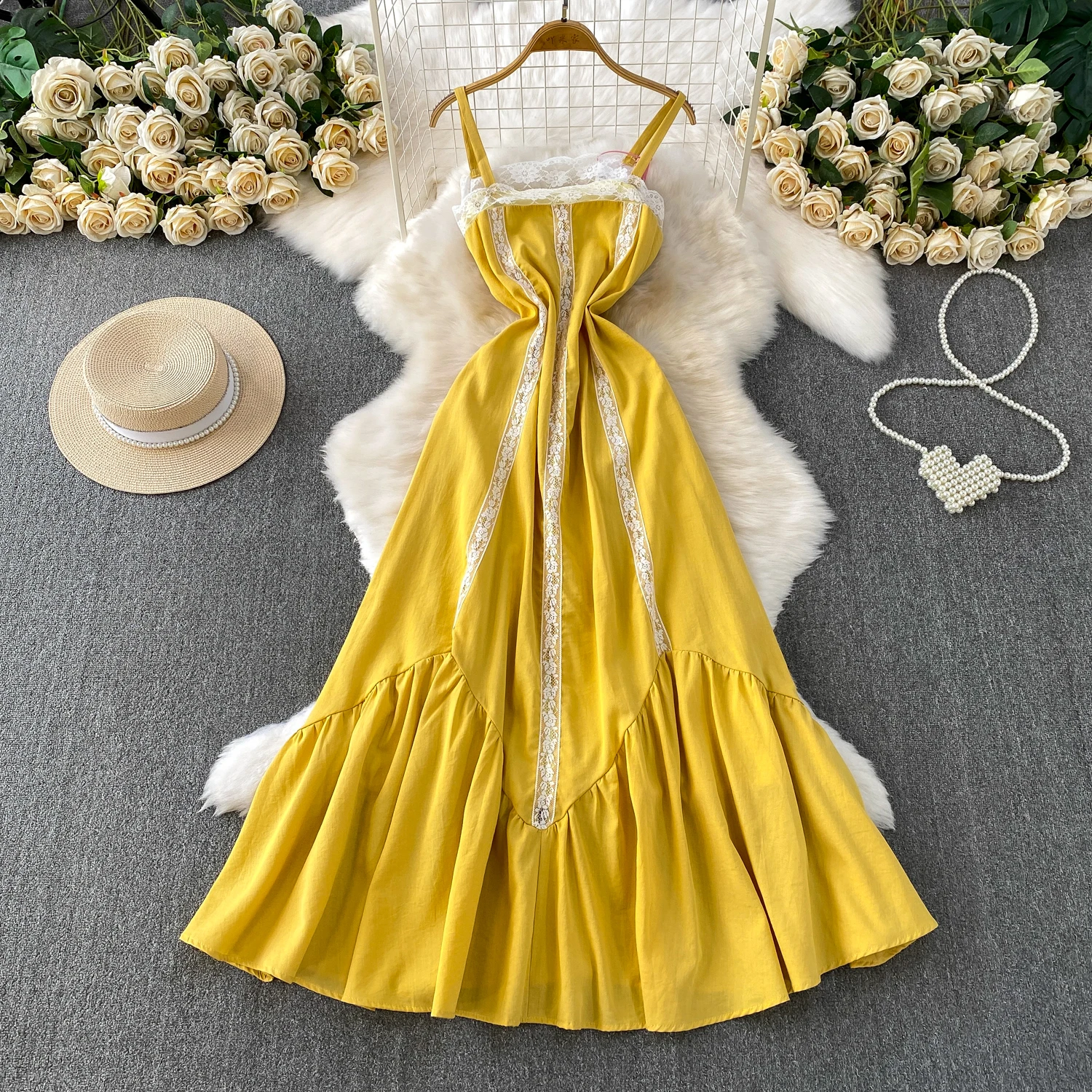 Embrace elegance with this sweet style featuring delicate lace splicing, perfect for a summer vacation.