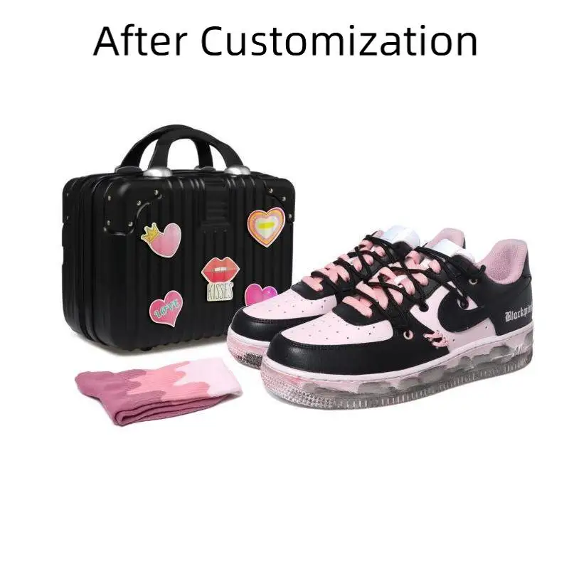 [Custom AF Black powder S-BOX]Nike Air Force 1 Skateboard Shoes Women's Low-Top Black/Pink