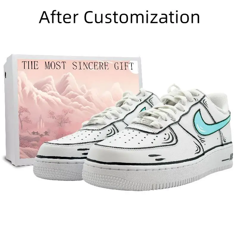 [Custom Cartoonist LAN SBOX]Nike Air Force 1 Low-Top Skateboard Shoes Men's Blue