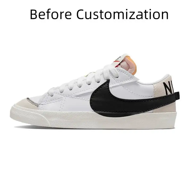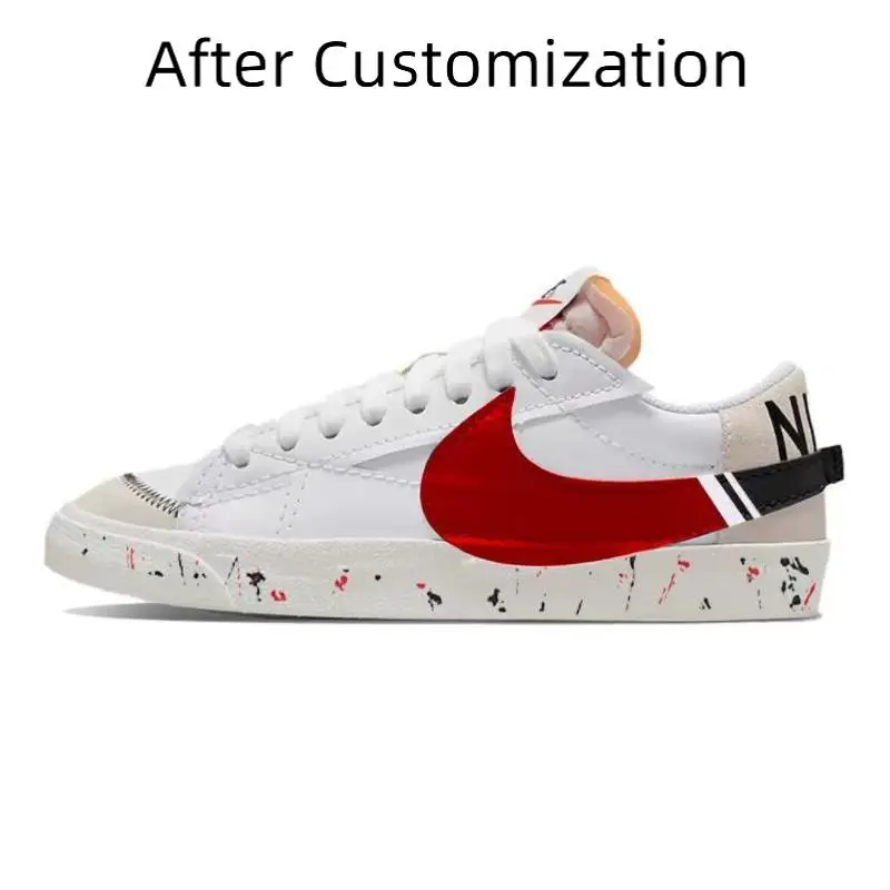 [Custom Fluid ink splashing]Nike Blazer Jumbo Low-Top Skateboard Shoes Men's White Red Black