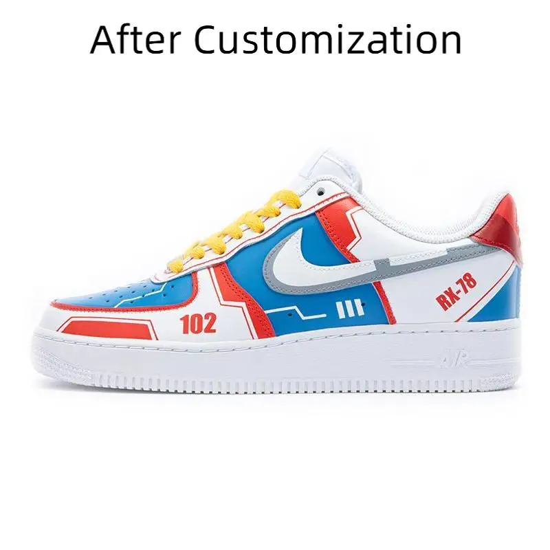 [Custom Men's mechanical style white, red and blue]Nike Air Force 1 07 Coverage Warm Low-Top Skateboard Shoes Men's Red White