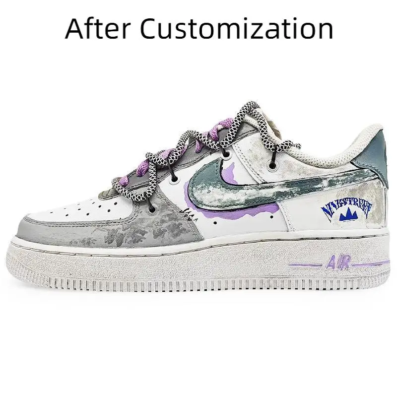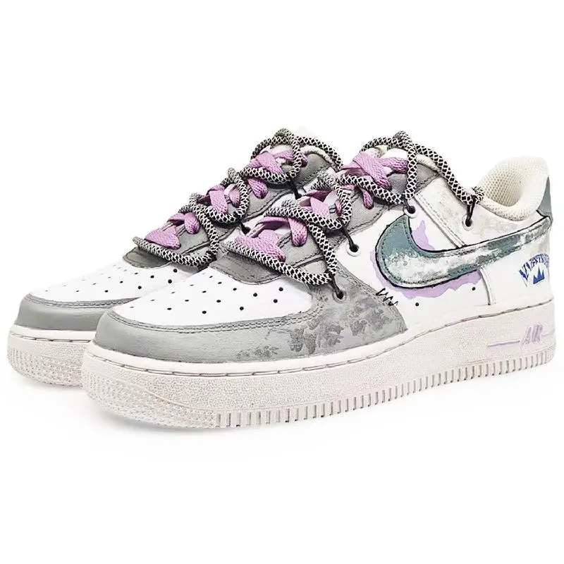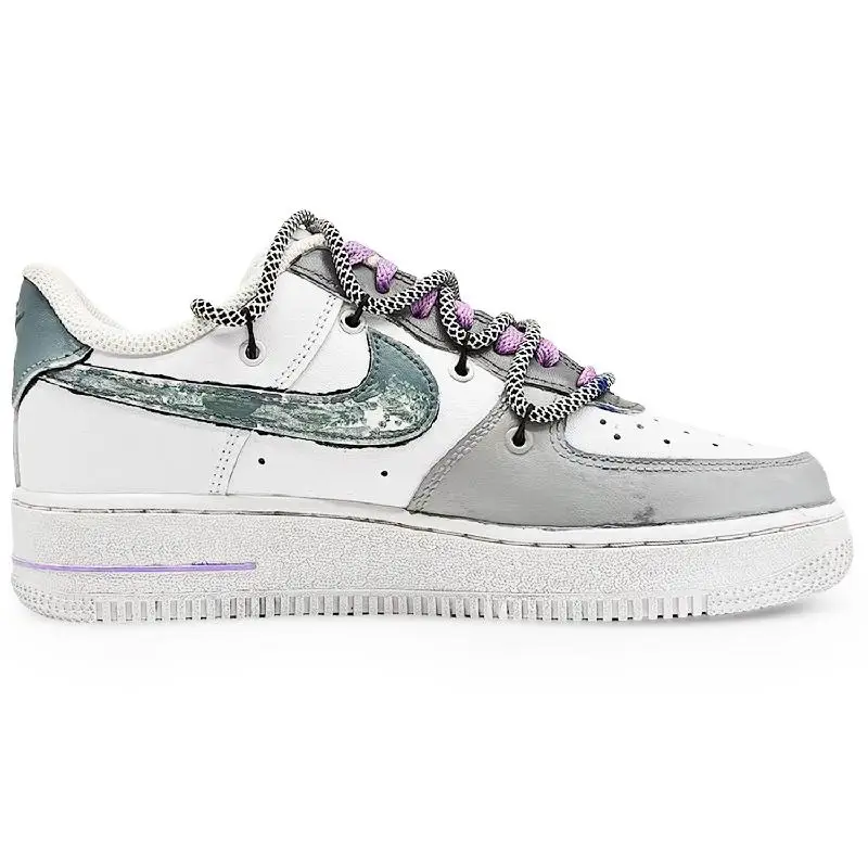 [Custom Ninth Street 2.0]Nike Air Force 1 Skateboard Shoes Unisex Low-Top Gray/White/Gray Blue/Purple/Blue/Black