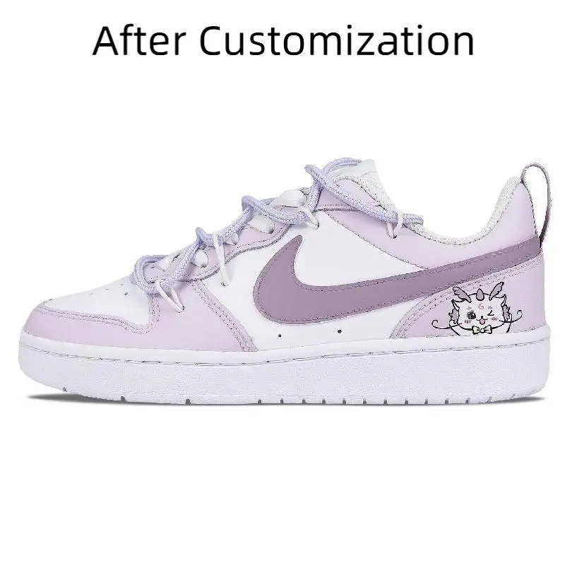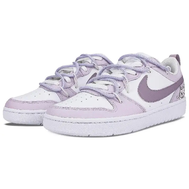 [Custom Purple cute dragon]Nike Court Borough Purple Cute Dragon Non slip Lightweight Low Top Skateboard Shoes GS White Purpl