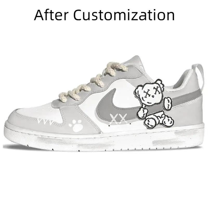 [Custom Starry Bear]Nike Court Borough Skateboard Shoes Women's Low-Top White/Gray