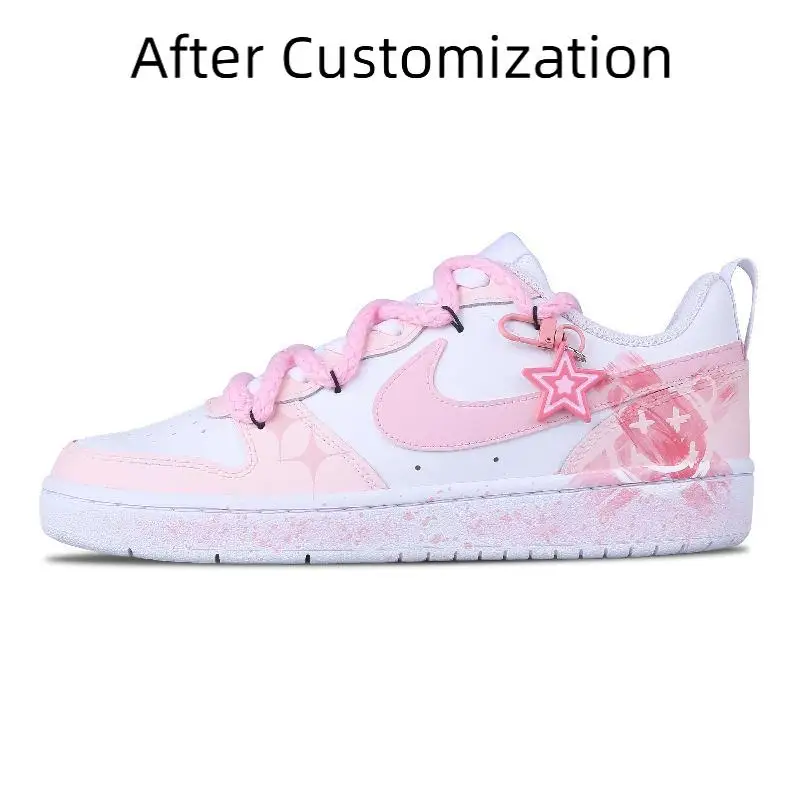 [Custom The women's pink version shines like stars]Nike Court Borough Skateboard Shoes Women's Low-Top White Pink
