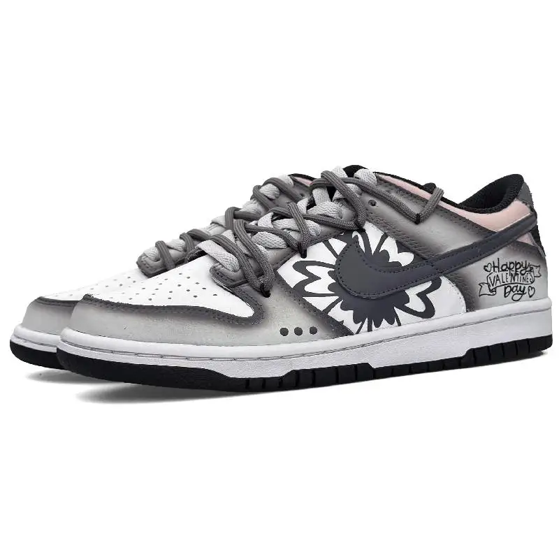 [Custom Valentine's Day]Nike Dunk Anti-Slip Wear-Resistant Low-Top Skateboard Shoes GS Gray White Pink