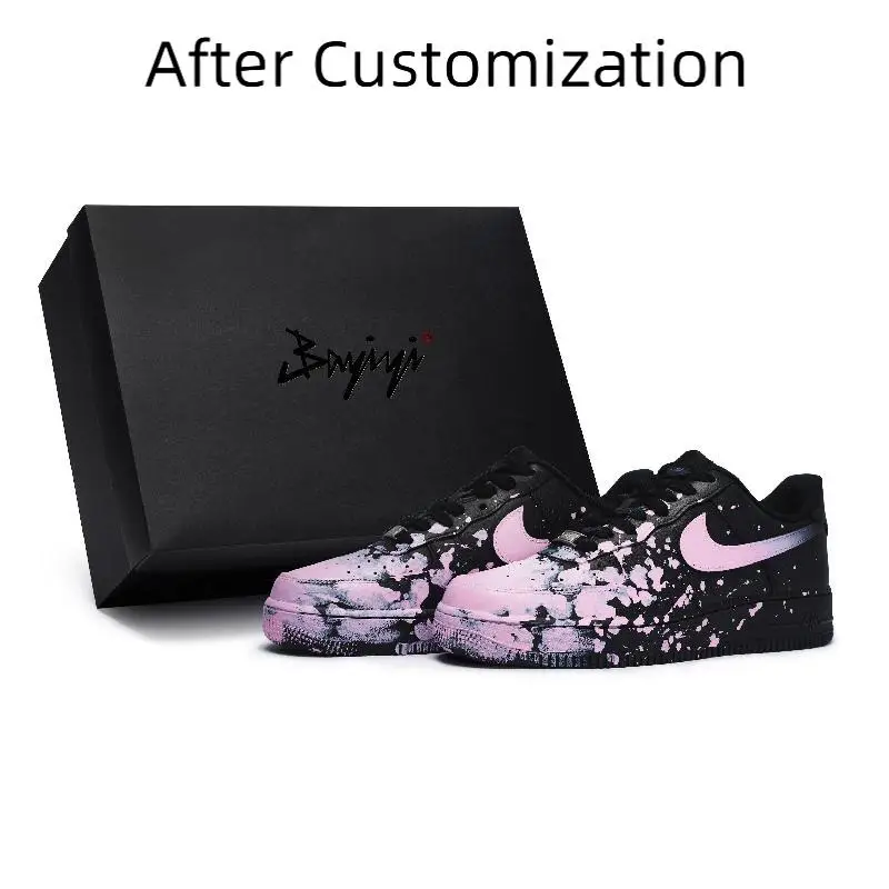 [Custom Women's dark pink foggy S-BOX]Nike Air Force 1 Skateboard Shoes Women's Low-Top Pink