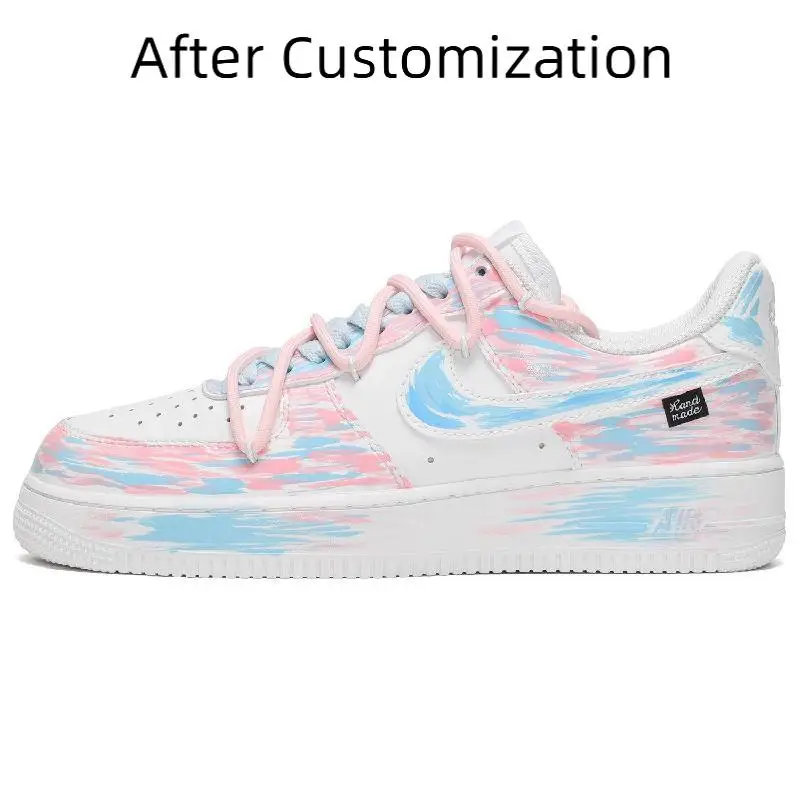 [Custom Women's Macaron Love in blue and pink]Nike Air Force 1 Low CUS ID Macaron Love Low-Top Skateboard Shoes Women's Blue