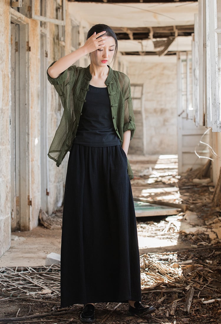 Elevate your wardrobe with our exquisite double-layer cotton stone washed skirt, designed for the modern traveler who values both style and comfort. This stunning A-line skirt combines artistic retro flair with practicality, making it the perfect choice for leisurely outings or casual adventures.