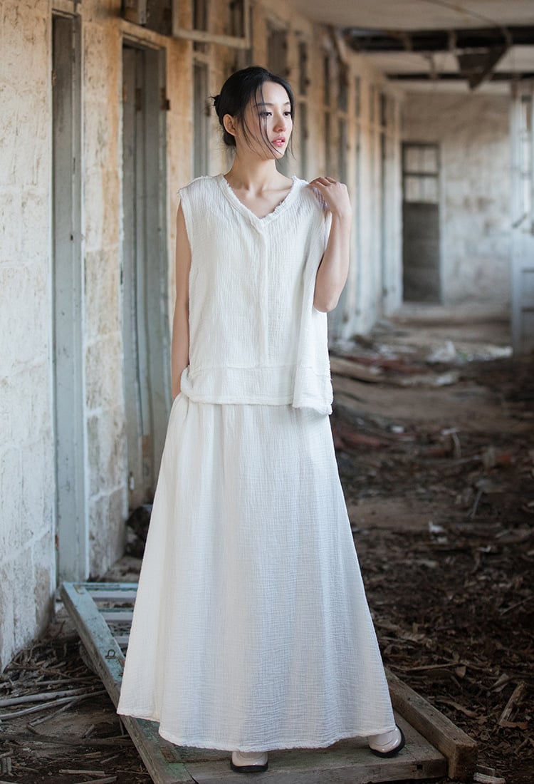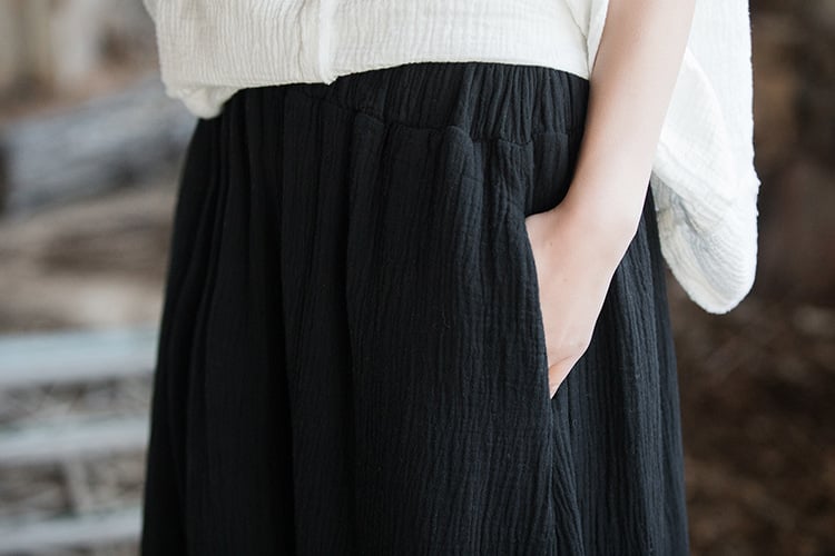 Crafted from high-quality double-layer cotton, this skirt offers a soft touch against your skin while maintaining a chic silhouette. Available in two timeless colors: plain white and dark black, it effortlessly complements any outfit. The long length adds an element of sophistication, allowing you to dress it up or down for any occasion.