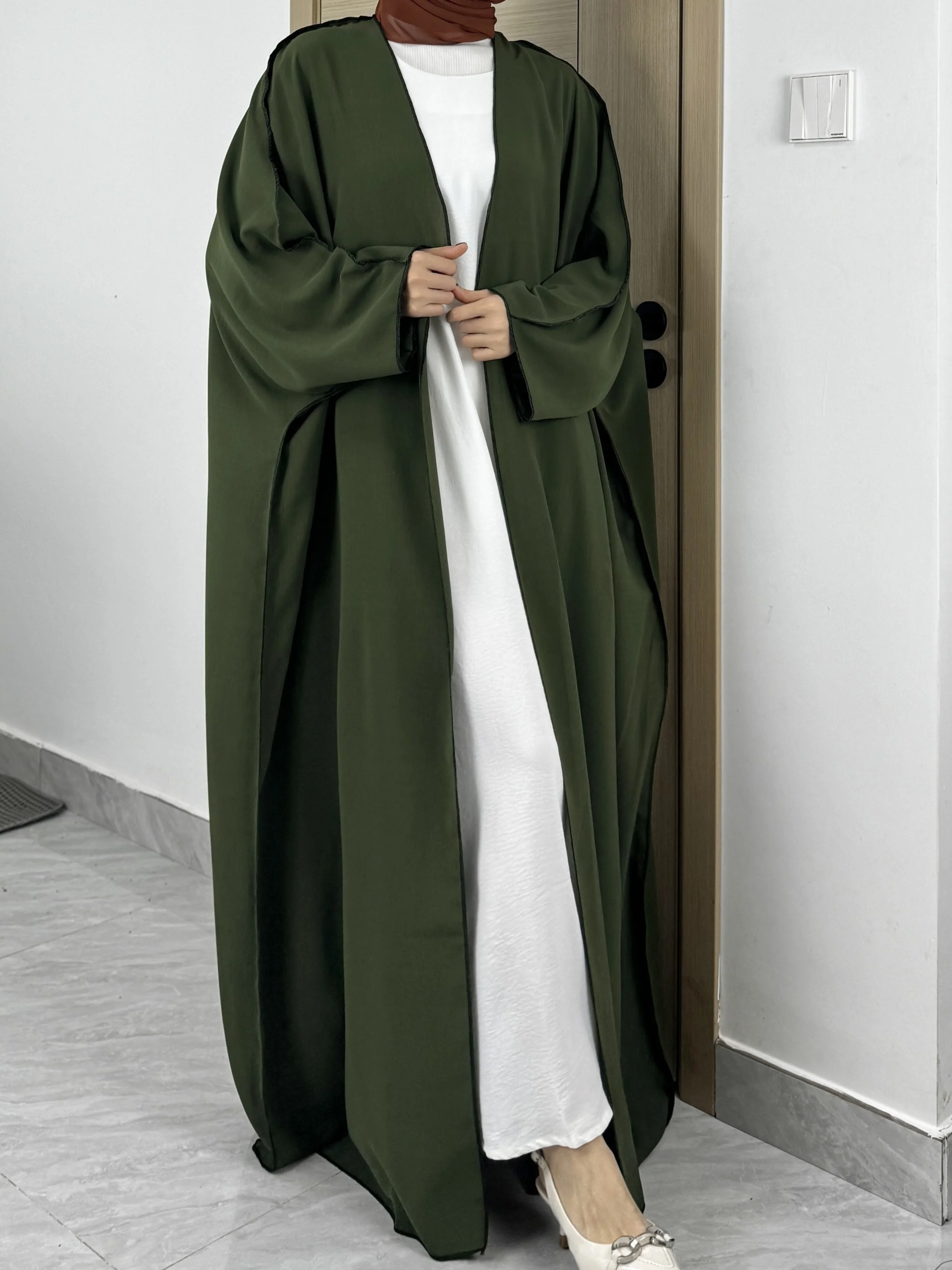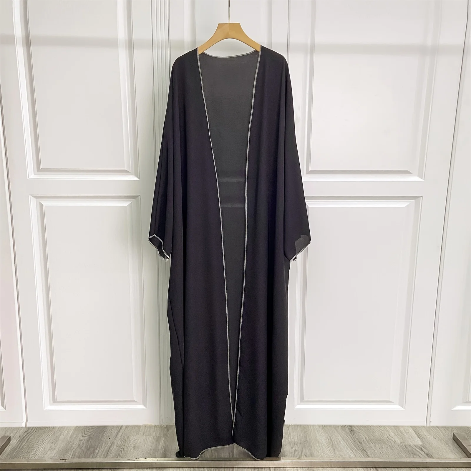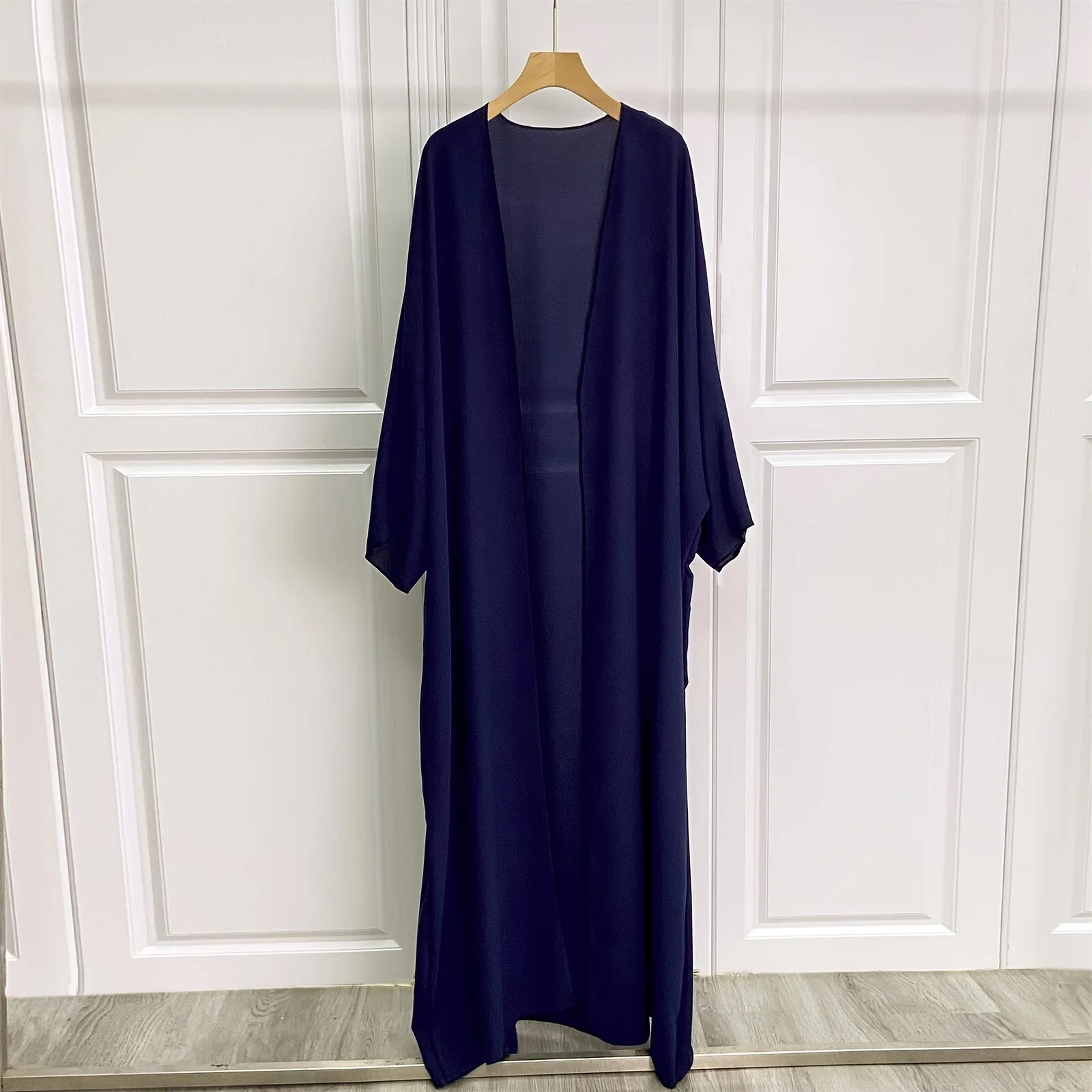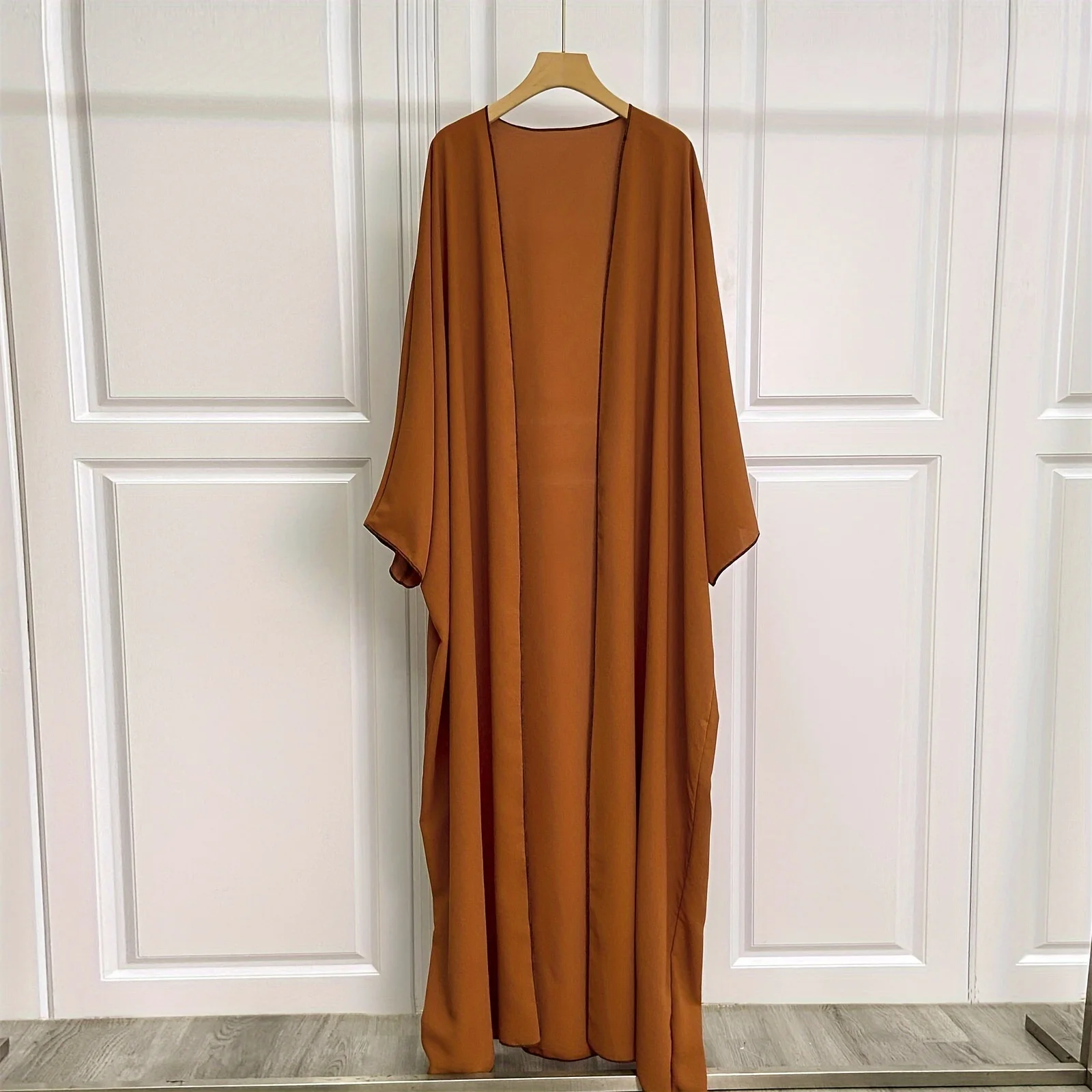 Solid Open Front Simple Abayas, Elegant Long Sleeve Maxi Length Cover Up, Women's Clothing