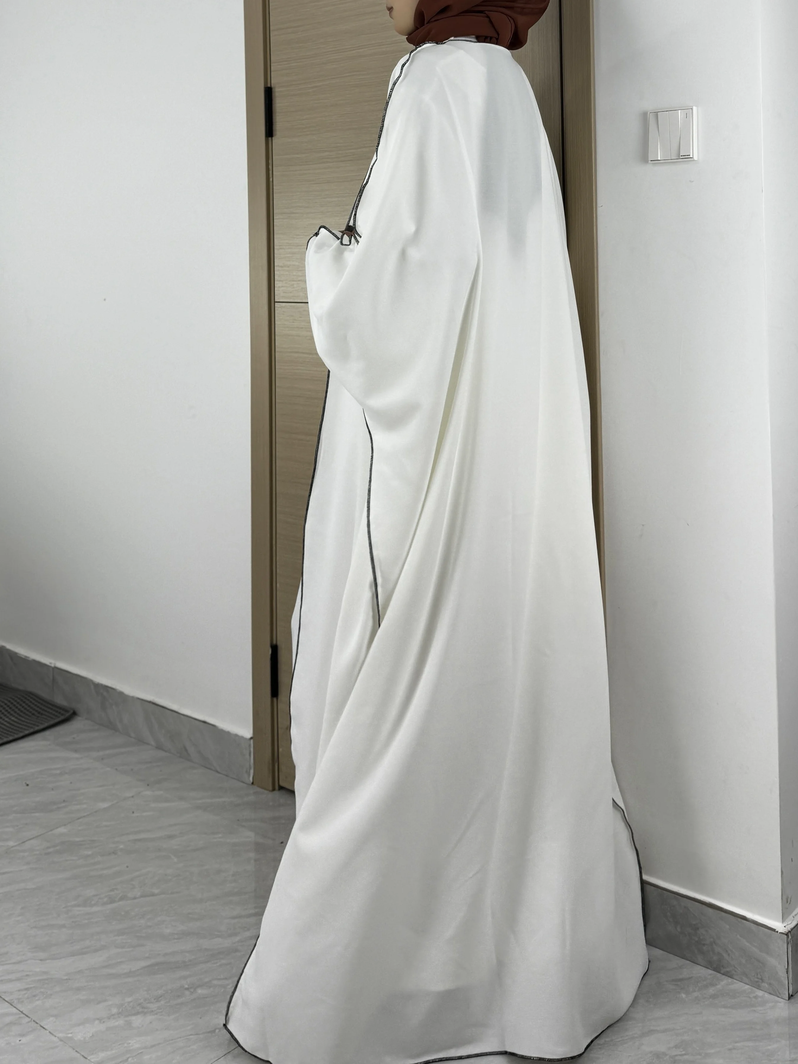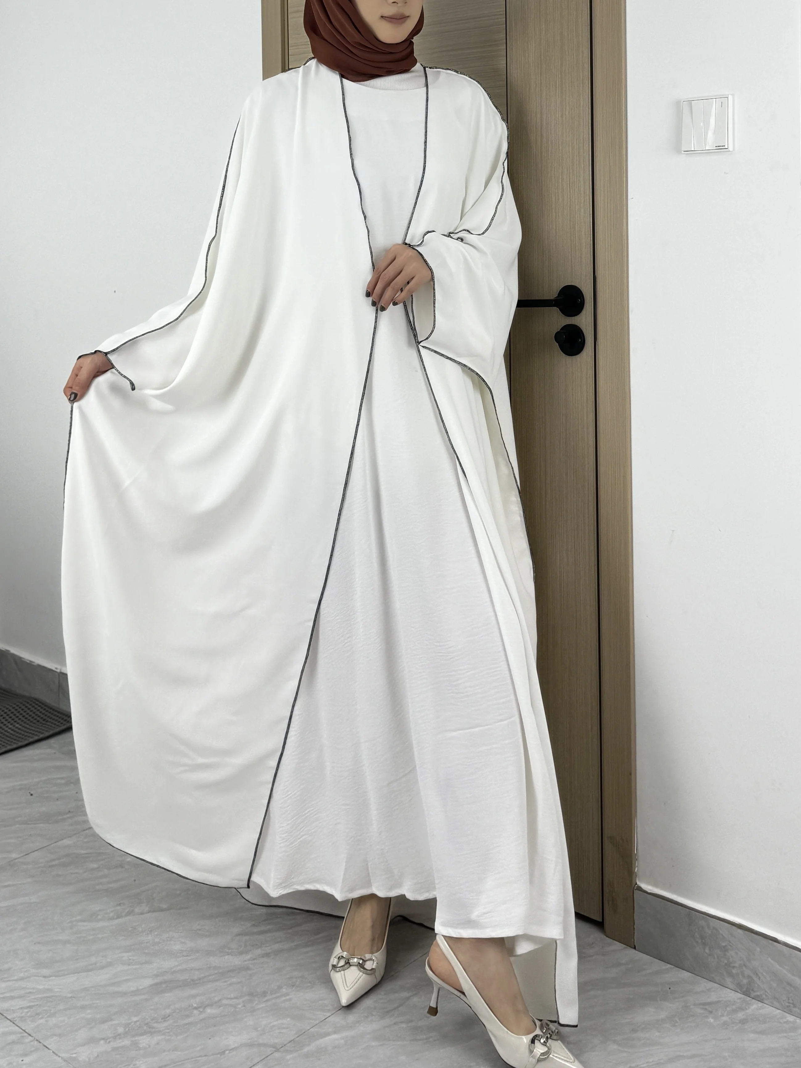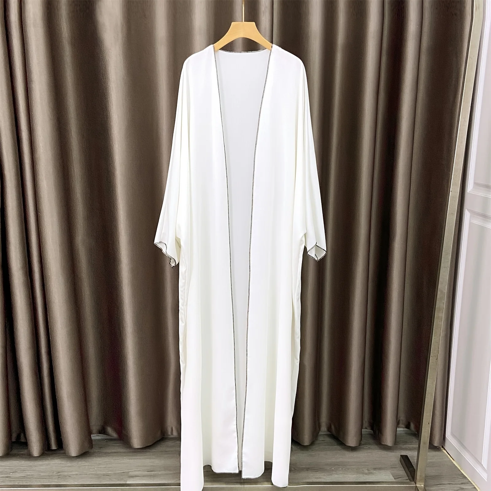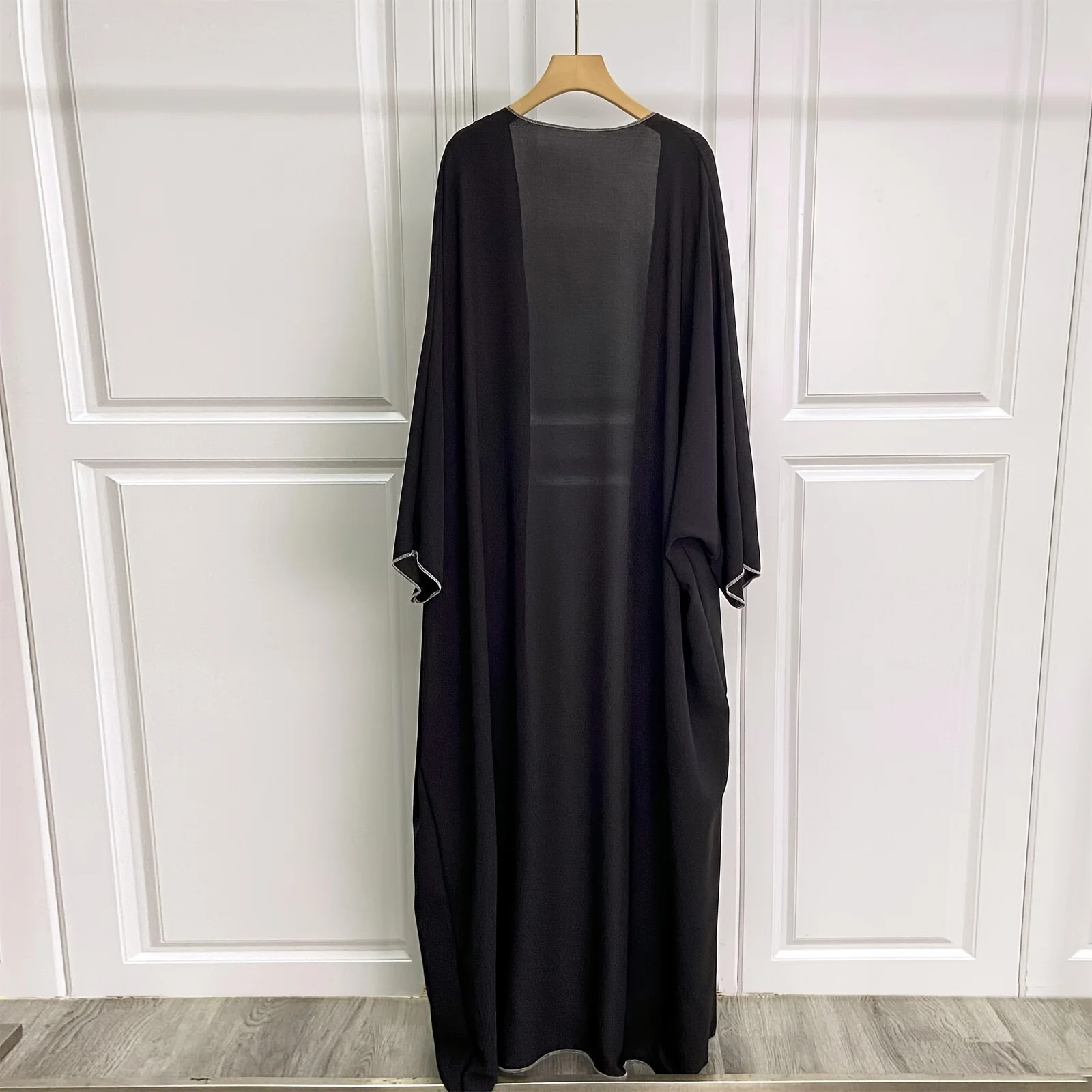 Solid Open Front Simple Abayas, Elegant Long Sleeve Maxi Length Cover Up, Women's Clothing