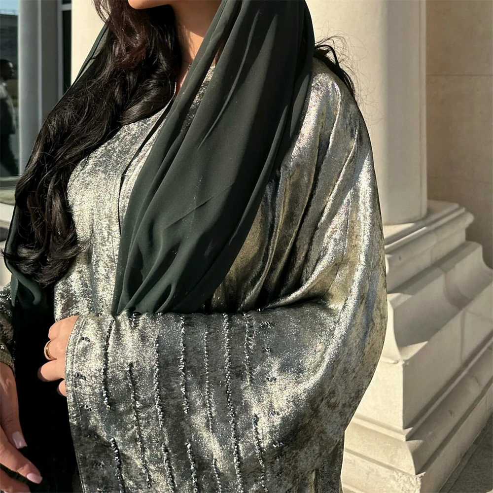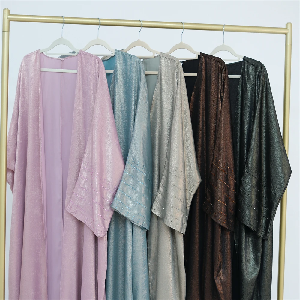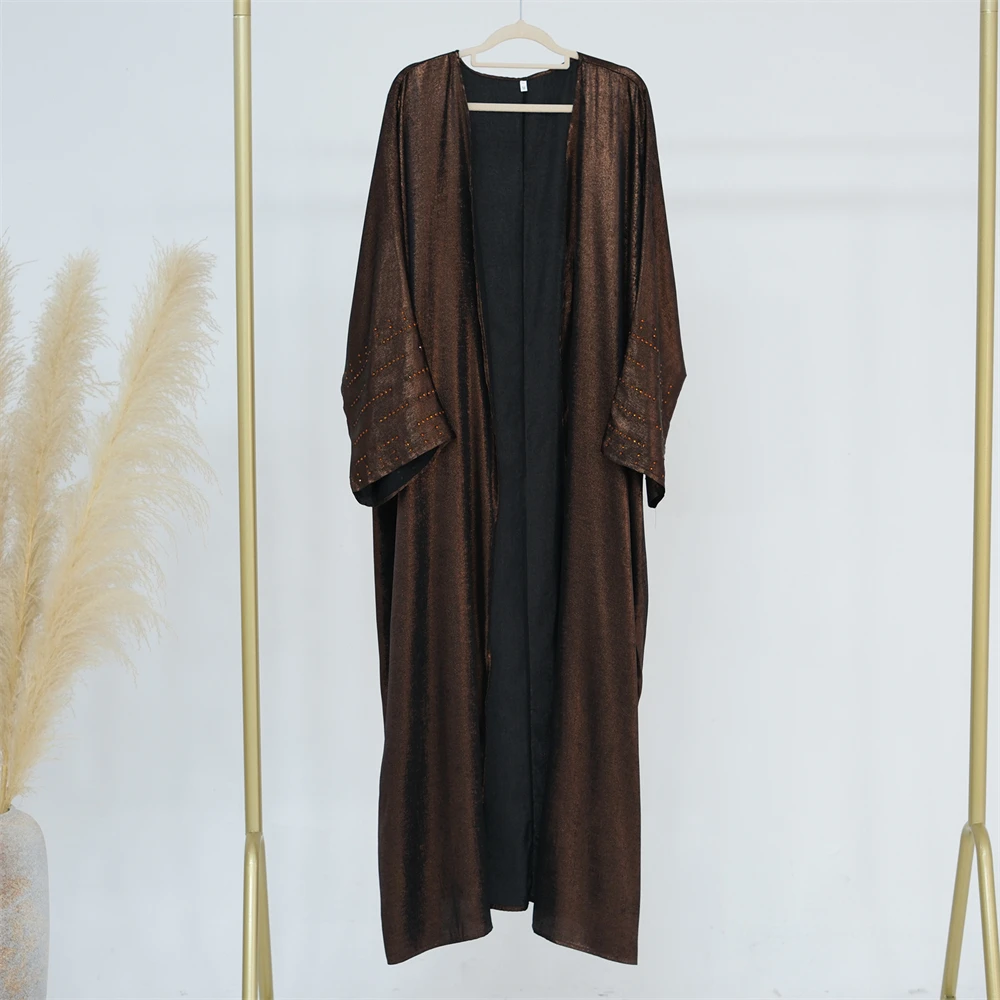 Shiny Satin Open Kimono Abaya Dubai Luxury 2025 Muslim Abayas For Women Kaftan Dress Islam Clothing Robe Femme Musulmane Caftan